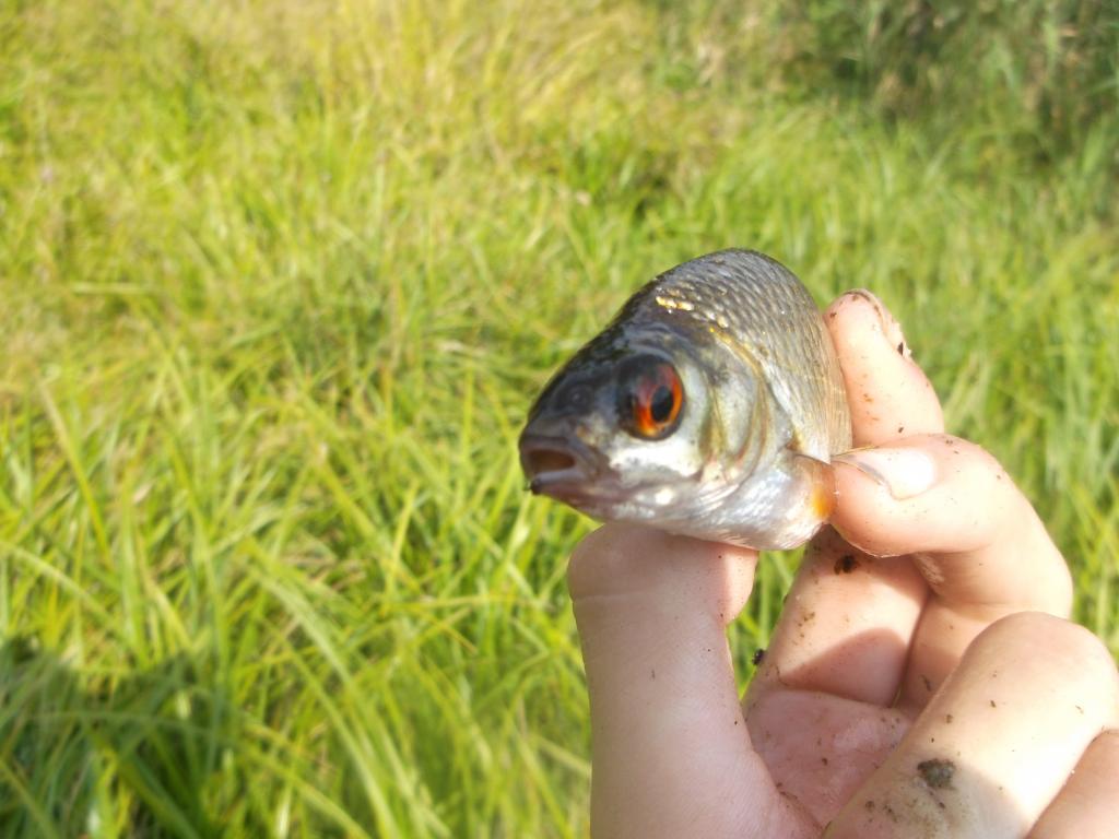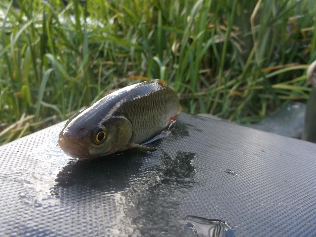 Nusistatau gylį ir primėtau kuojoms skanių,kvapnių jauko rutuliukų.Kol ant kablio vėriau musės lervą paviršiuje spėjo susirinkti žuvis.Pirmu metimu mano musės lerva susigundė nedidelė kuoja,po dar kelių kuojų pagavau dar tame ežere nepagautą žuvį-raudę.