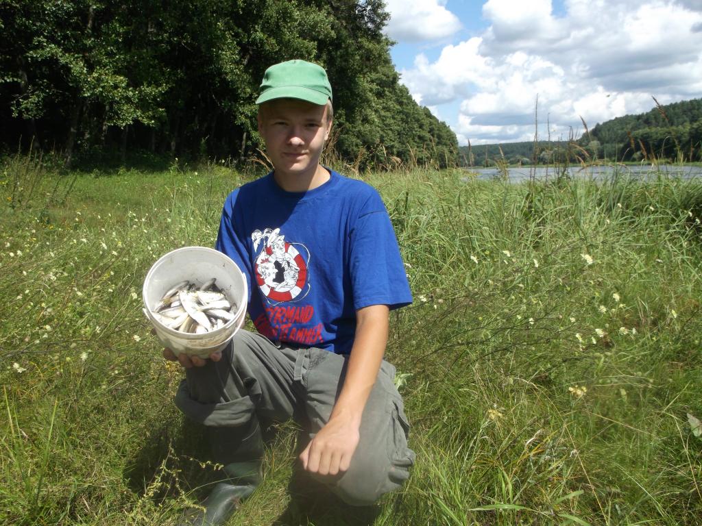 Paėjęs dar keliasdešimt metrų užkabinau vobleriuką ir nutraukiau spiningavimą upėse turbūt visam laikui.Baigęs spiningavimą permečiau dugnines ir pradėjau plūdinę žvejybą.Kadangi atvykome į naują vietą ir nežinojome situacijos joje ir pasiėmėme per trumpas meškeres.5m. nuo kranto buvo apie 70cm. gylio,tad kurį laiką nenoriai ,bet kibo aukšlės su kuriomis susirinko ir šapalai.Pamatęs kaip šapalai "vaiko" mailių pasiėmiau muselinę.Pastebėjęs kur taškosi didesni šapalai nusprendžiau numesti prie jų ,bet po kelių nemokšiškų mano metimo nutraukiau vieną iš 2 muselių.Vėliau pagalvojau kad geriau jau keli mažesni nei vienas didesnis tai pradėjau mėtyti kaip su sportine meškere.Pavyko pagauti kelias aukšles ir viena nediduką šapaliuką.