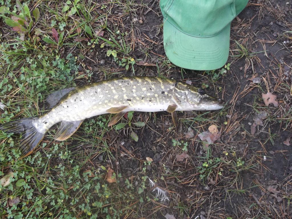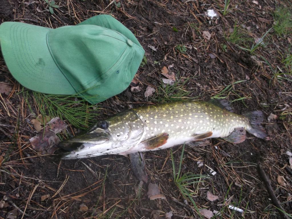kadangi buvo kelios lietingos,šaltos dienos nusprendžiau patikrinti kaip kimba lydekos.Atsikėliau apie 06:00val. pažiūrėjau per langą ir pamačiau kad lyja,tad užkaičiau arbatinuką ir nutariau kol virs pagulėti.Išėjo taip jog užmigau ir atsikėliau tik apie 10:00val.Maždaug už valandos jau buvau prie pirmos vietelės,baiginėdamas vietos patikrą,paskutiniu metimu,visiškai prie nendrių ir kranto pajutau smūgį ir išvydau kad su mano masalu dantyse į šoną plaukią lydekaitė,būčiau iškėlęs "oru",bet žuvis "paprašė' valo tad teko pavargti kol vėl prisitraukiau ją prie kranto.