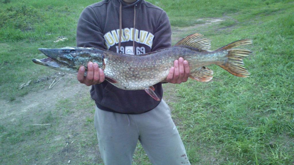 Šiandien vakare buvau prie ežero. Pirmas metimas - kibimas, lydeka 42cm, po poros metimų 44cm ištraukta, po kokių 10 minučių lydeka užkibo, traukė LABAI stipriai, turbūt virš 3kg tai tikrai, bet neištraukiau :/ (Lydis žinoma paleidau). Ką daryti jeigu didelė lydeka užkimba nežinau, aš traukiu iš visų jėgų, bet man visada jos atsikabina, bet mažesnes be vargo ištraukiu... Ir dar kažkaip keistai čia pergerai kibo, nes dažniausiai 3h+ mėtai ir nei vieno kibimo -_-. Žvejojau su Zumpe Jūra 23007 - 25g.