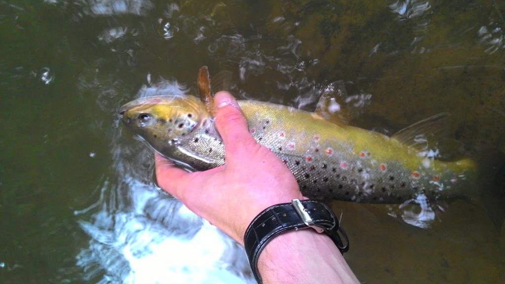 Buvau šiandien žmonos deleguotas parinkti grybų. Turėjau keturias laisvas valandas. Įsimečiau spiningėlį, sakau pabrisiu upeliu kai tik pradės švisti, leisiu grybams pora valandų ūgtelėti :) Pasirodo, bridau ne veltui. Gaila, neturėjau normalios ruletės, šios popierinės 37 cm nebeužteko, primečiau gal kiek netiksliai, apie 42-43 cm.