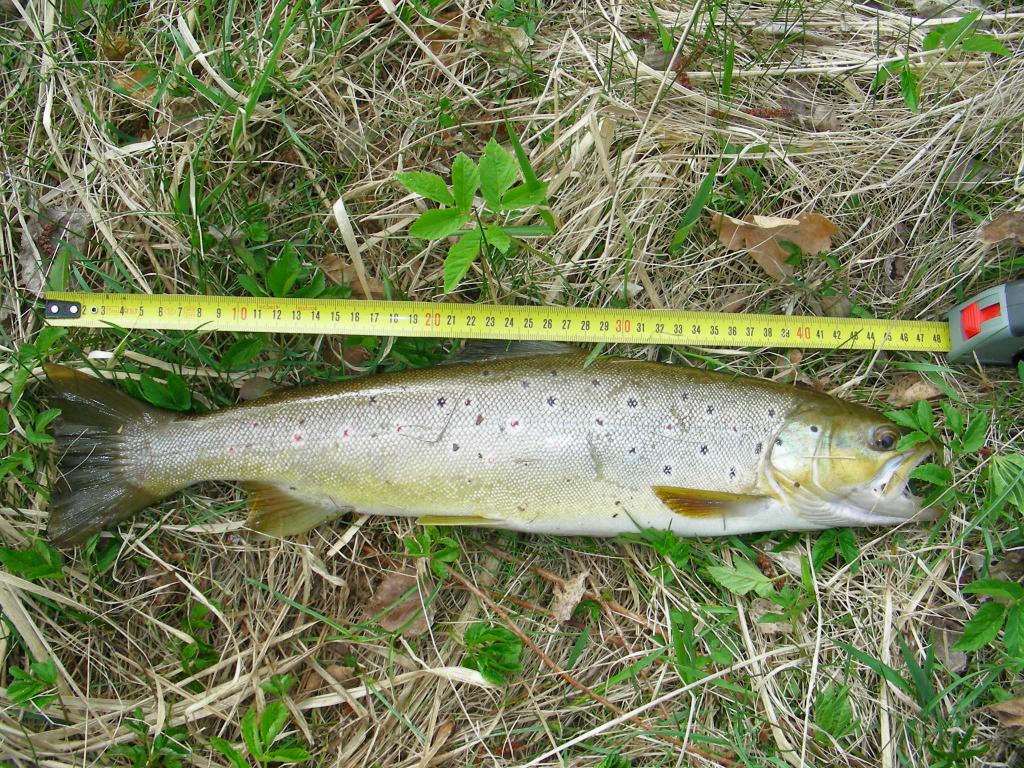 Aš taip pat pasidžiaugsiu vakarykščiu laimikiu, asmeniniu rekordu - 47 cm, 0,96 kg upėtakiu, kurį pagavau gražioje upėje :grin: Mačiau žuvies ataką, kaip iš upės vagos plaukia link sėkliaus ir kerta per masalą... Vaizdas super ;-var-var. Išvis pagavau 16 upėtakių ir dar kokie 3-5 kibimai tušti. Bet iš tų 16 vnt. tik vienas legalus, kurį matote nuotraukoje. Visus nelegalus, žinoma, paleidau. Dar nesu turėjęs žvejybos su tiek daug kibimų. Matyt pataikiau palankų orą, slėgį, vėją ir t.t. :lol: Geriausiai kibo kol lijo ir buvo apsiniaukę, o kai pasirodė saulė, nustojo kibti...