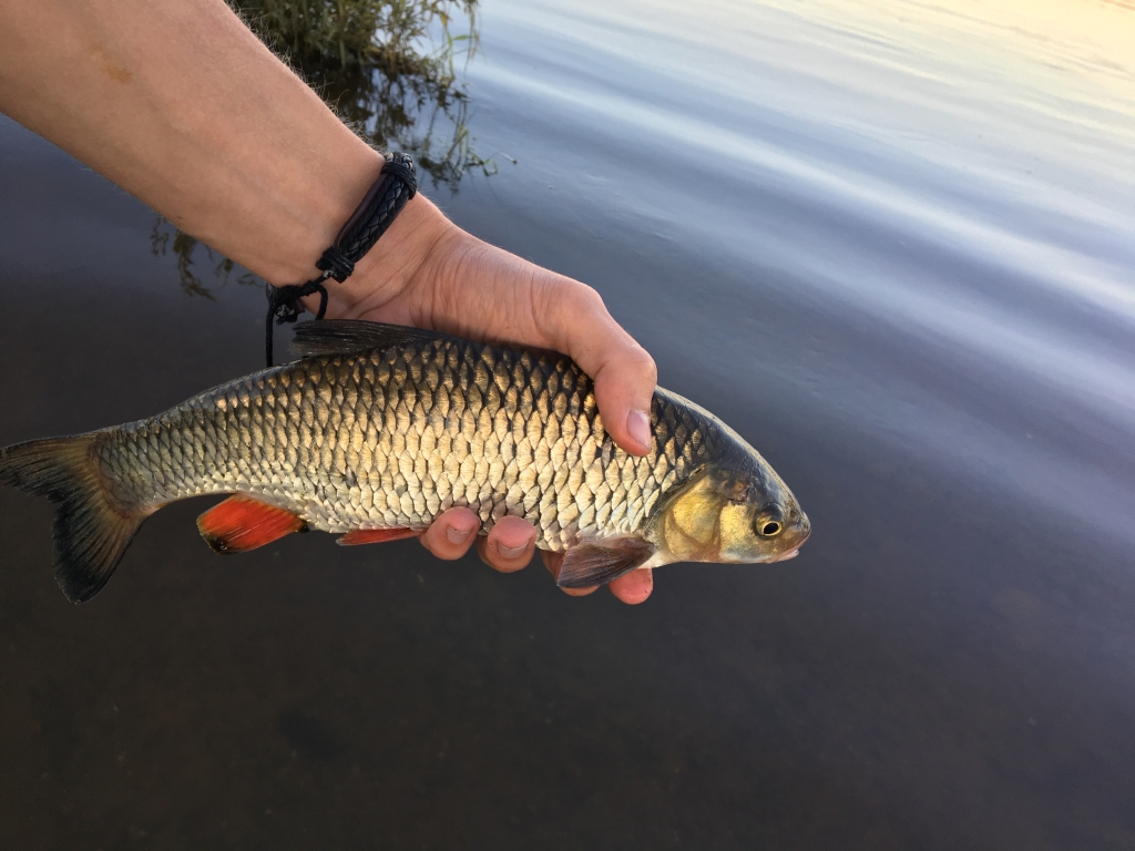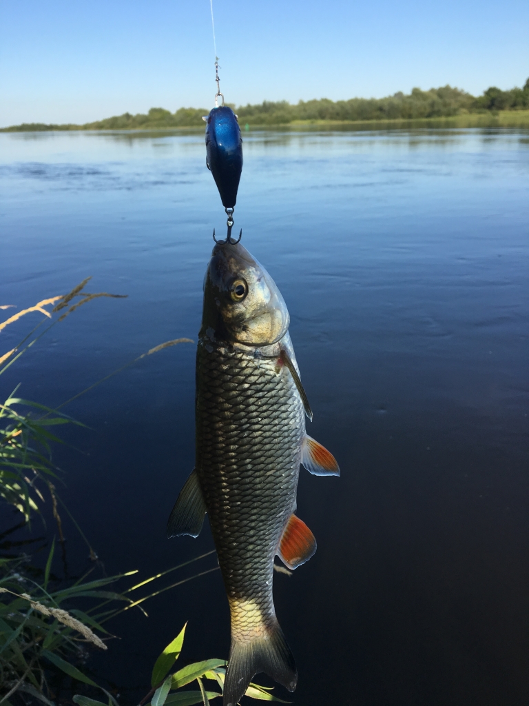 Vėl pavakarojau prie Nemuno. Ne per seniausiai grįžau. Mėčiau nuo 19-21 valandos, o per tą laiką susigundė tik mini, taškuotas ešeriokas. Tada jau beveik susiruošiau namo, žingniavau link mašinos bet nusprendžiau padaryti kelis metimus kitoje žinomoje vietoje, akmenyne, kur esant žemam vandeniui nemažai tiek šapalų, tiek salačių. Užsidėjau gan ryškų, mėlyną su rožiniu pilvu, Chubby SSR, kuriuo nelabai tikėjau, bet gal trečiu metimu vedant pasroviui kalė ir fotosesijai pasisveikino visai gražus šapaliokas. Dar keli metimai, mini šapaliukas. Pradėjo temti, metas namo. ;uolrait