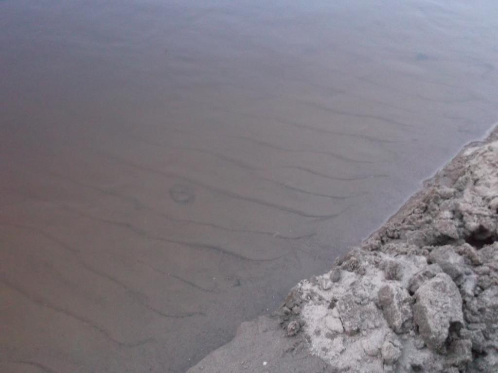 Užmetus visas dugnines nuėjau pažvejoti su plūdine. Sudrėkinau jaukus, pasiėmiau meškerę ir nuėjau link upės vingio. Einant smėliuotu krantu matosi pakilusio vandens padariniai.