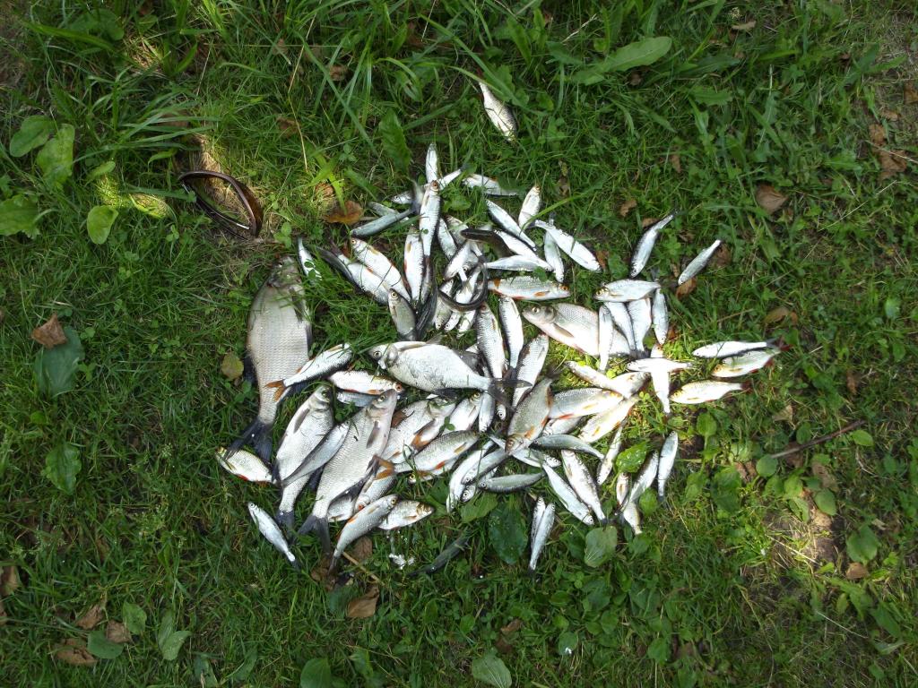 Pabaiginėjant žvejybą meškerė atrodė taip lyg paukščiai būtų pasidarbavę,o priešais "kulkosvaidžio ugnį" augančios žolės buvo visos "sušaudytos".