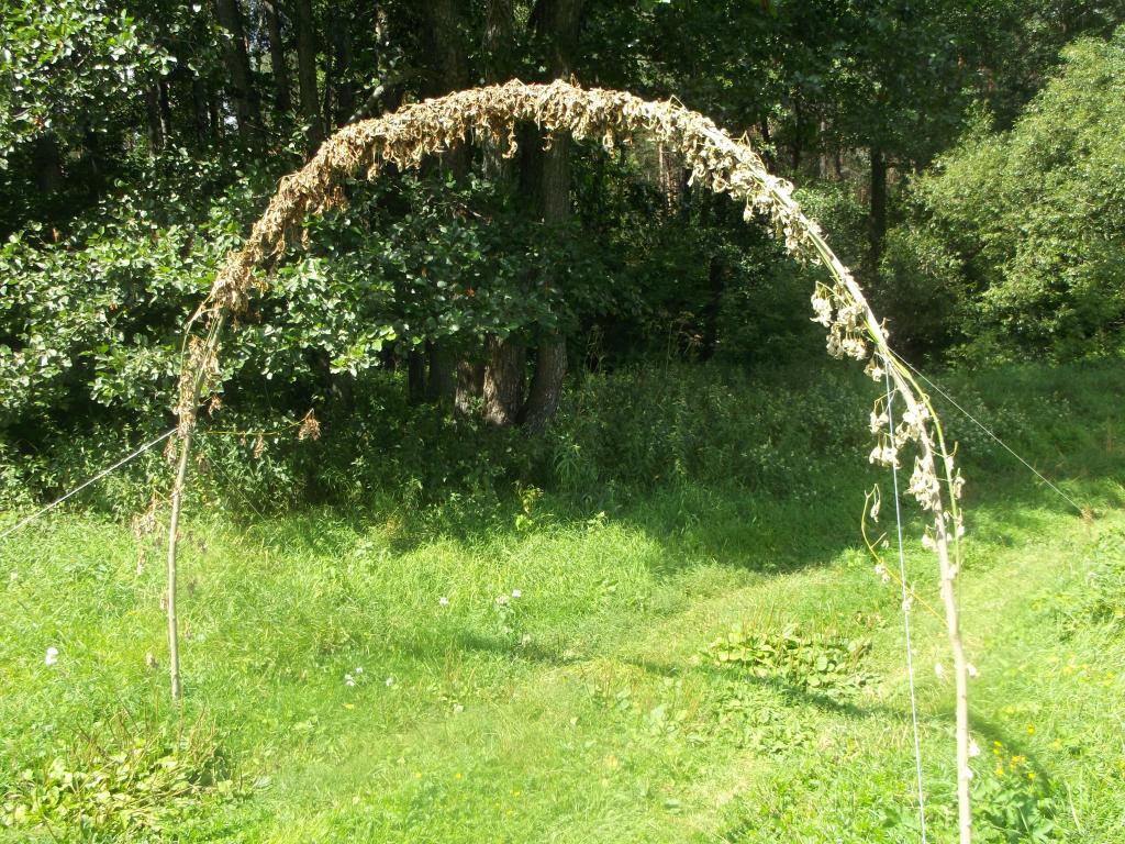 "aborigenų" pastatytus vartus,net nežinau kokias jie apeigas galėjo atlikinėti.Vėliau vaikštant pakrante ir ieškant tinkamesnės vietos žvejybai ir pagaliukų susmaigstytu į pakrantės smėlį supratau kad tie "aborigenai" dar ir "murziai",nes statė "šniūrus".Susitvarkius žvejybos vietą nuėjau nufotografuoti įvairiausių kvapų bei spalvų Nemuno pakrantės augalų.Štai pirmoji gėlė + bitutė.