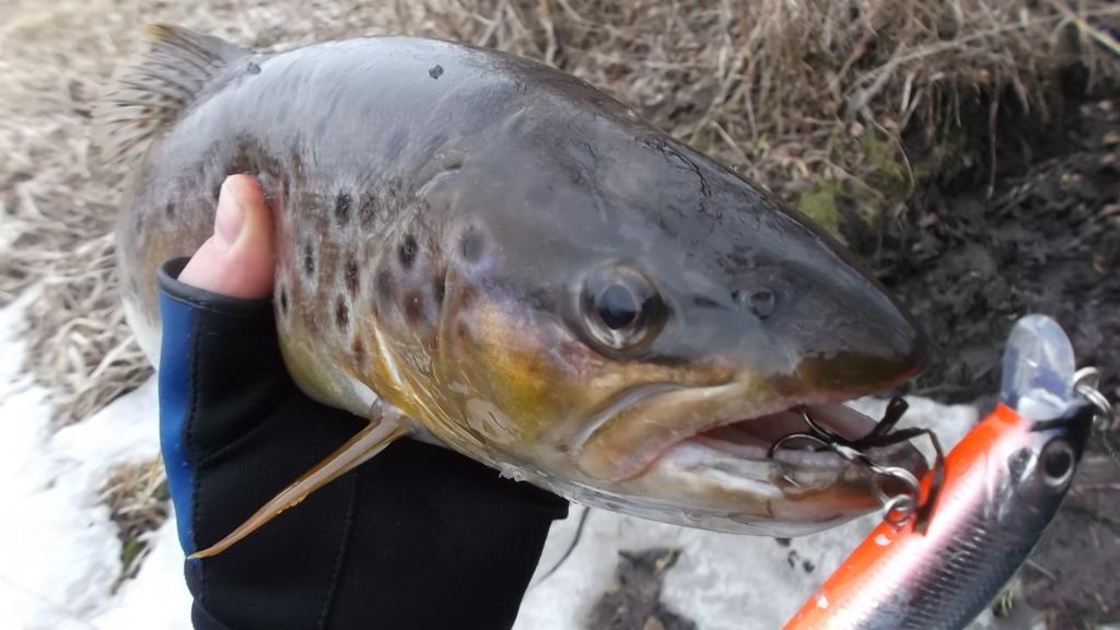 Penktadienį teko važiuoti iš Klaipėdos į Vilnių, tad nutariau pažvejoti vidury Lietuvos. Arčiau Klaipėdos palikau keletą iš pažiūros žvejojamų upių, o kai atvažiavau prie numatytosios,tai atradau, kad ji ... užšalusi ir tik vietomis yra laisvų properšų. Pervažiavau prie sekančio upelio, čia situacija geresnė, bet ledo visgi dar daug. Pora valandų pažvejojęs nusprendžiu, kad upelis gal kiek mažokas ėjimui pasroviui. Tada lekiu prie trečios upės. Ji kiek didesnė ir beveik visiškai išsivadavusi iš ledų. Tiktai o bet tačiau vanduo drumstokas, ne beviltiškai, bet visgi. Pora valandų žvejybos,bet tuščia... Dar nelengva šiuo metų laiku ir save sunku sulaikyti, kai norisi vis bėgt į priekį kaip šiltuoju metų laiku. O ir upės naujos, nežianai kas kuriame ruože kada vyksta.