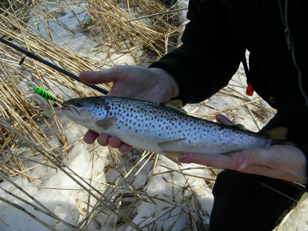 Minijos intake x - vandens skaidrumas nuostabus, tačiau lygis kaip po sausros. Kažkas neseniai buvo praėjęs, nes pėdos buvo likusios. Realizuotas vienas kibimas - Spro salotinė sukrė Nr. 3 Nustebino žmogus, nutraukė valą ir pririšo prie medžio, greičiausiai žadėjo sugrįžti išsiimti, kai lygis nukris. Sulaukiau tik vieno upėtakio, kuris du kartus atsivijo voblerį, bet taip ir neužsikabino. Pakeitus voblerį, užsikabino, pasipurtė ir nuėjo. Pavasaris ateina, lazdynai jau duoda žiedadulkių, kažkas iš vabzdžių jau bando skraidyti. Dar 2 savaitės ir bus viskas savo vietoje.