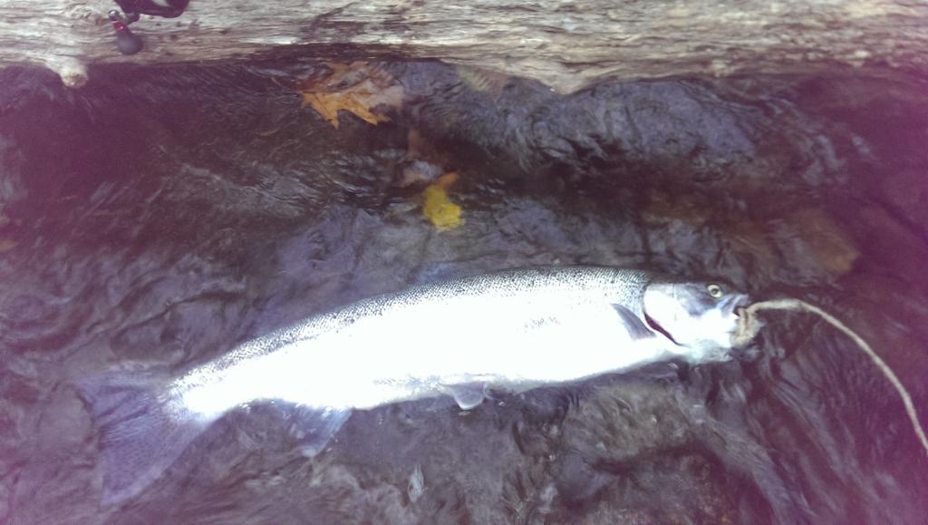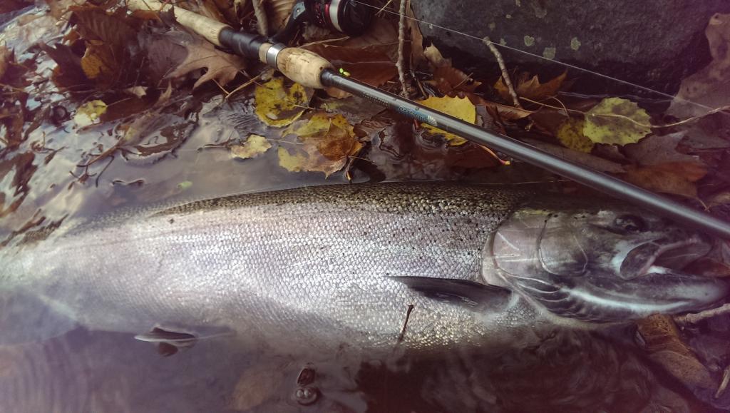 Einu pakrante ieskodamas ramesnio vandens vandens uzutakiu ir juos tikrindamas vobleriuku. Deja visiskai nesekmingai ir po truputi tai pradeda varyti nevilti. Po gero pusvalandzio neskemingu bandymu pagauti upetaki pamatau kita meskeriotojas. Beje, taip pat spiningautoja, kassiose vietose ganetinai retas reiskinys, nes turbut nesumeluosiu sakydamas, kad daugiau nei 90% matytu meskeriotoju gaude muselinem meskerem. Tas meskeriotojas nei nedvejodamas isibrenda vos ne i viduri upes ir pradeda su sukre sukuot kliokiancia reva. Beje, net ir tie keli sutikti spiningautojai cia gaudo pagrinde tik sukrem ir vobleriu mano nuostabai siose vietose niekas nenaudojo. As buvau tokia visiem keista isimtis. Na ir ka sau manot? Ogi tas spiningautojas isibrides i upes viduri ir ,zvejodamas panasiai lyg Nemuno ar Neries revoje bandytum pagauti sapala, neuzilgo ikerta grazu vaivorykstini upetaki. Taciau kol ji traukia, tas Upetakis atsipurto. Na man to ir tereikejo, baigiu cackintis su vaiksciojimu pakrantemis, brendu i upe ir imuosi sapalines zukles taktikos. Gal is trecio ar ketvirto metimo pasisodinu grazu vaivorykstini upetaki ir po neilgos kovos krante guli grazi mazdaug 40cm ilgio zuvis.
