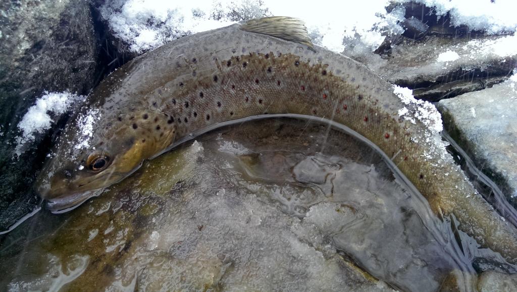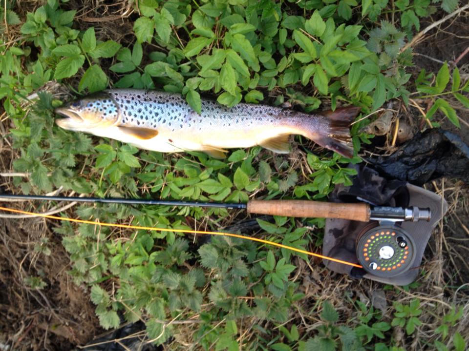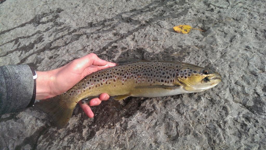 Neturiu jokio noro bendraut su sita publika, tai islaikydamas atstuma pereinu is naujo i ruozo pradzia ir stebedamas upetakiams infarkta ivaryt bebandancius “raudonsprandzius” prisirisu atgal buggeri bei pradedu is naujo leistis ruozu pasroviui. Po viso sito triuksmingo vietiniu aborigenu pasirodymo dideliu vilciu ruoze pagaut upetaki nebeturiu. Taciau, kaip atsirade, taip nieko pagauti nesugebeje “kolegos” dingsta man is vaizdo. Ruozas po truputi rimsta, taciau jau arteja vakaras ir laikas baigti zvejyba. Letai leidziuosi ruozu zemyn ir pacioj ruozo pabaigoj issokes is po kelmo, kai as maziausiai to tikejausi, mano bugger’i atakuoja grazus mazdaug 35 cm margasis upetakis. Po kiek truputi ilgiau nei deretu uztrukusios kovos,mat dar teko prisimint ir kaip su museline traukt zuvi, upetakis trumpai fotosesijai atsiduria krante.