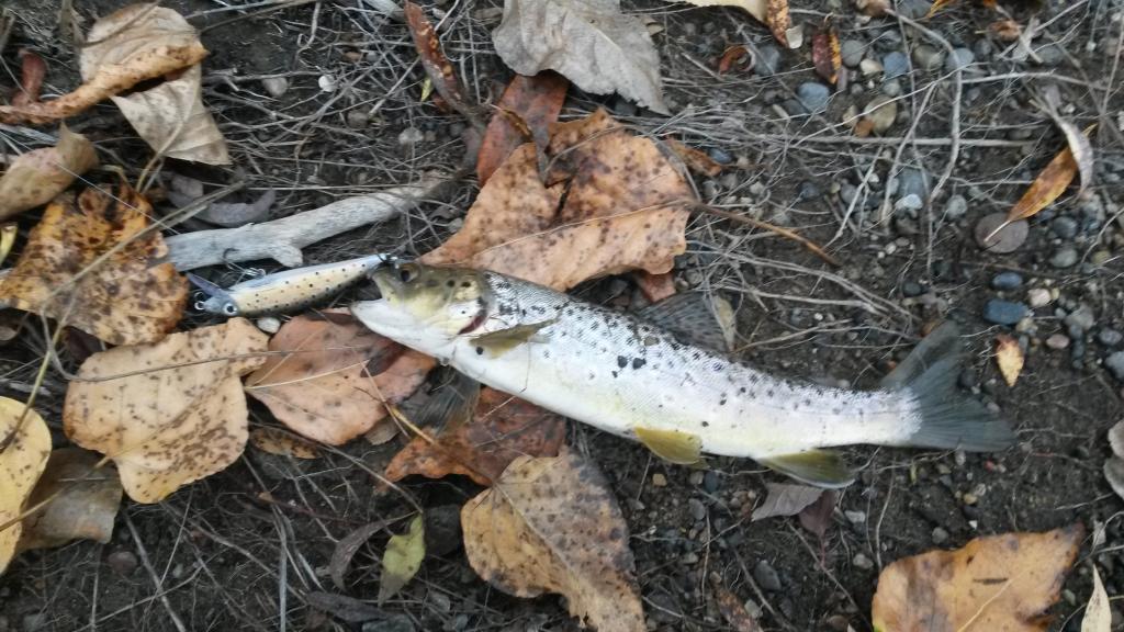 Dar kiek paejus prasideda kokio simto metro ilgio ramaus vandens ruozas. I darbines pozicijas grizta komachis ir ji gana aktyviai kapoja nedideli margieji upetakiai. Sis ruozas kiek gilesnis, tai nusprendziu eilini kart perkratyt masalu dezute beieskodamas ko nors stambesnio. Uz akies uzkliuna Jackall squad minnow 65 vobleriukas. Tai labai grazu darba tolygiai traukiant turintis vobleriukas, kuris dirba grazia sinusoide gana placiai (kaip beje ir komachis) metydamas i sonus savo uzpakali, o toks platus metymasis i sonus, mano supratimu, tai itin patinka lasisinems zuvims. Jau vakareja ir grizineju atgal tuo jau viena karta praeitu ramiu ruozu bemetydamas squad’a. Pacioj ruozo pabaigoj vobleri stveria kiek stambesnis taciau nieko labai ypatingo margasis upetakis.