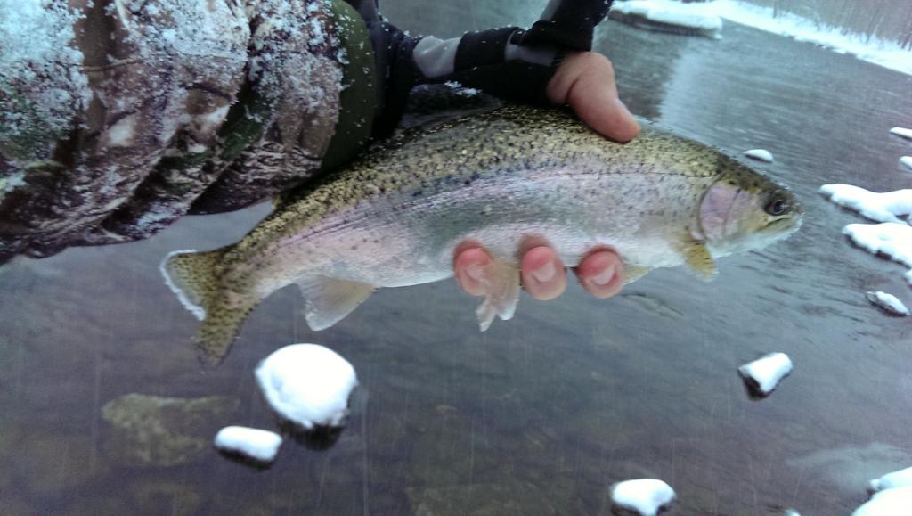 Bet kaip jau minejau, tai vobleriai cia ne itin populiarus ir tokiom savybem pasizyminciu gaunu tik 7cm plaukiancia klasika Rapala Original. Sekancia diena zvejoti nutariu jau isbandytam ruoze Madison upeje, nes tenais visgi kibo stambiausi upetakiai. Rapala originalas valo gale ir po truputi pradedu bristi tuo ruozu pasroviui. Ruozo pradzioj dugnas pasidenges tokia lyg samana ir net tas originalas ir tai ja gana daznai kabina ir parsitempineji tu samanu kuoksta. Tenka po truputi “primusinet” ranka tokiai zvejybai ir vobleri traukti su pauzem.Metra patraukiu, vobleris kiek paneria, tada darau pause, vobleris plaukiantis tai kiek iskyla. Ruozas pradeda kiek gylet ir vis dazniau parsitraukiu vobleri be zoliu, o gal tai lemia ir jau kazkiek prie tokio zukles budo pripratus ranka ir vobleri stveria ne itin didelis vaivorykstinis upetakis.
