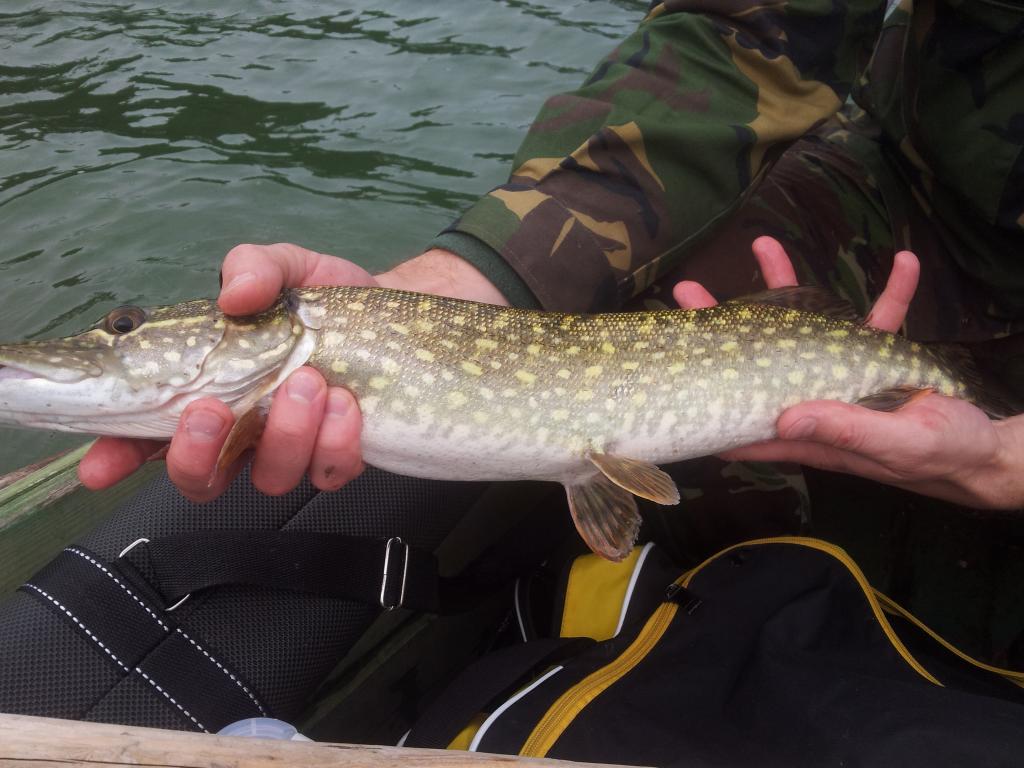 , vėl išsigąstu kad neapsisuktų apie inkaro virvę ar dar kur, šiaip taip išprašau atgalios, jis vėl po valtim , bet jėgos jau pasilpusios, paėmęs už valo ištempiu iš ten, paklusnus pasidarė, įkišęs pirštą burnon šiaip taip suimu stipriai už žiaunų, paleidęs meškerę prigriebiu antra ranka ir ... laimikis jau pas mane
