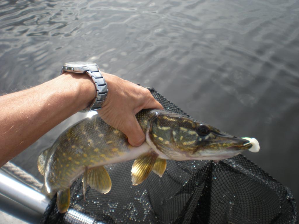 ,,Karšis“ , pajutęs didesnį pasipriešinimą, irgi rodo savo jėgą, staiga jis iššoksta iš vandens ir aiškiai pamatau, kad tai lydeka...Nors kiti ir neįžiūrėjo, girdžiu spėlioja, kas čia gali būti, gal starkis, gal dar kas, o aš aiškiausiai mačiau, kad lydeka, ir nepasirodė jin man didelė, gal 2 kg, pagalvoju.
