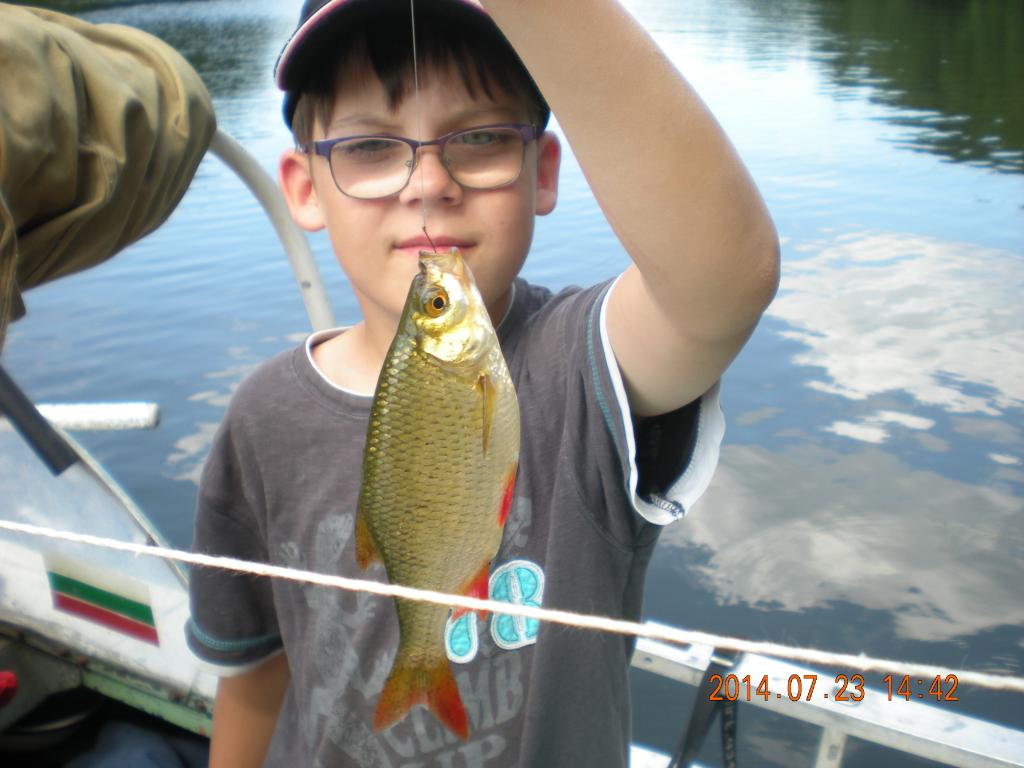 , patariu priveržt šiek tiek stabdį, nes žuvis tolsta nuo mūsų gan sparčiai... Jau jinai, padariusi gan didelį ratą, atsiduria kitoje pusėje Kazankos, taip mūsų išsinuomota valtis vadinasi.
