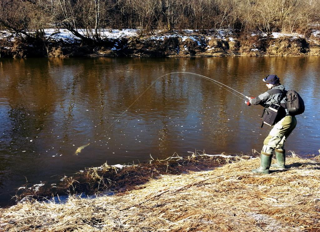 Na o pirmadienį jau su spiningais prie upės. Vanduo žemas, žiedai šąla. Bet gaudom. Pakilus saulutei nugarą pradėjo visai maloniai šildyti. O apie pietūs ir ilgai lauktas kibimas. Smagi kova ir 62cm, 1,96kg šlakis krante. Atiduota duoklė objektyvams ir žuvis, žinoma, keliauja atgal.