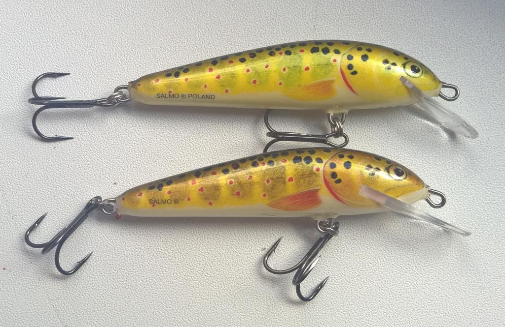 Paskutinius porą metų Salmo Minnow S modelis kažkodėl buvo deficitas (todėl turėdamas vos porą jų labai čiedijau)... Ypač populiariosios upėtakio spalvos. Nuėjęs į Salmo šįmet apsidžiaugiau, kad pagaliau užsivežė. Bet nusipirkęs ir parsinešęs namo pamačiau, kad jie jau visai kitokie nei senieji legendiniai modeliai - liežuvukas kitoks ir įstatytas kitu kampu... Dar nebandžiau kaip dirba, bet neabejoju, kad darbas turi skirtis. O ir užrašo "Poland" kažkodėl neliko :-D Nuojauta sako, kad šitie negaudys taip gerai kaip senieji :roll: