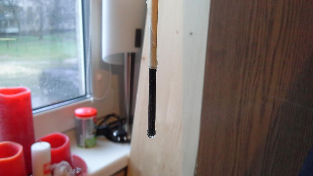 Toliau sumaisom paprasciausius dvikomponencius klijus, uztepam plonu sluoksniu ant virsunes ir pakabinus, duodam isdziut: