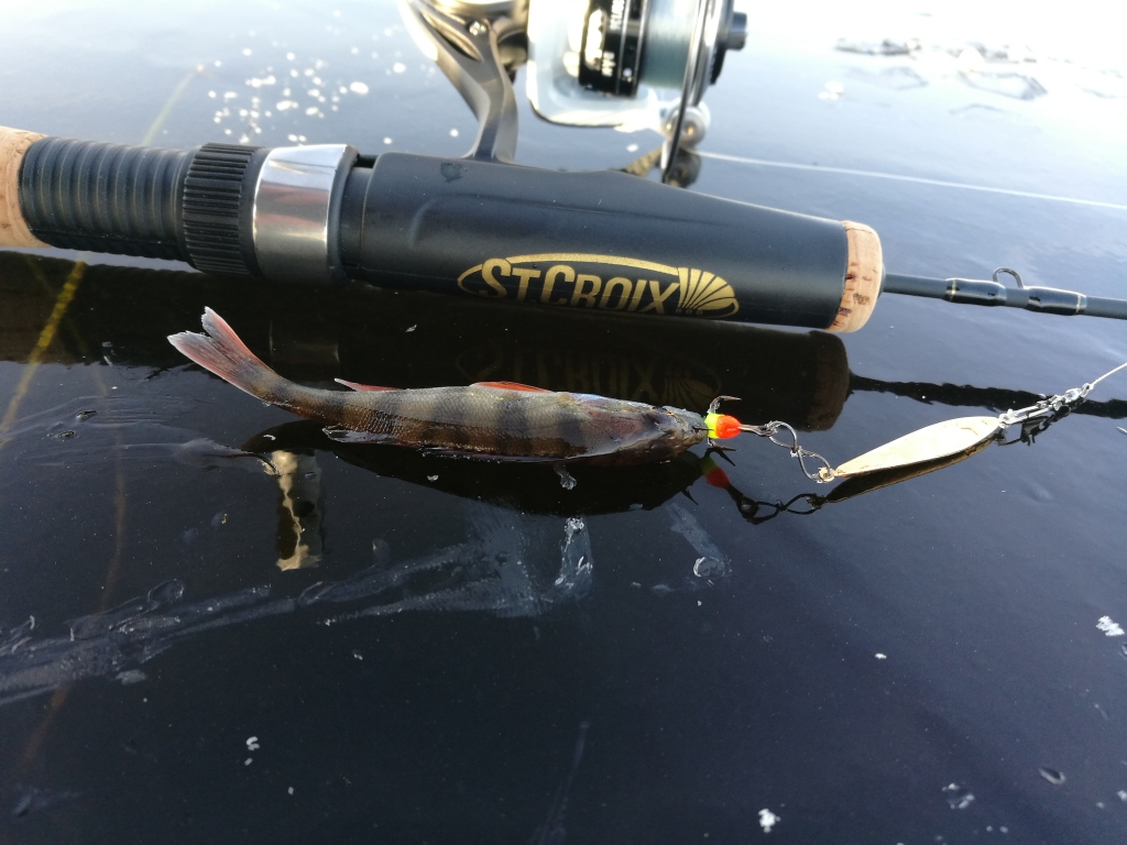 Ešerio vaikai kabaliojos, bet lydekos matyt baidės. Ledas stiklinis, vanduo skaidrus, saulė plieskia , o gylio max. 2.5m.