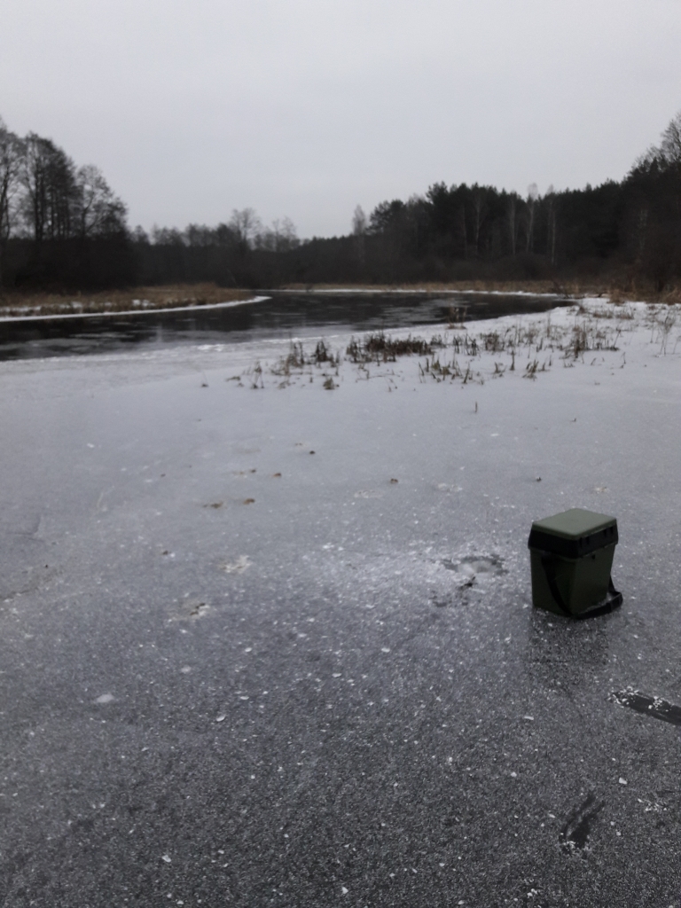 Patikrinom kita tvenkini uz 5km. Nuo kranto 2metrai,2 grazto prasukimai ir ledas traska braska. Visi atsiradom krante :grin: va kokie skirtumai su ledo storiu.
