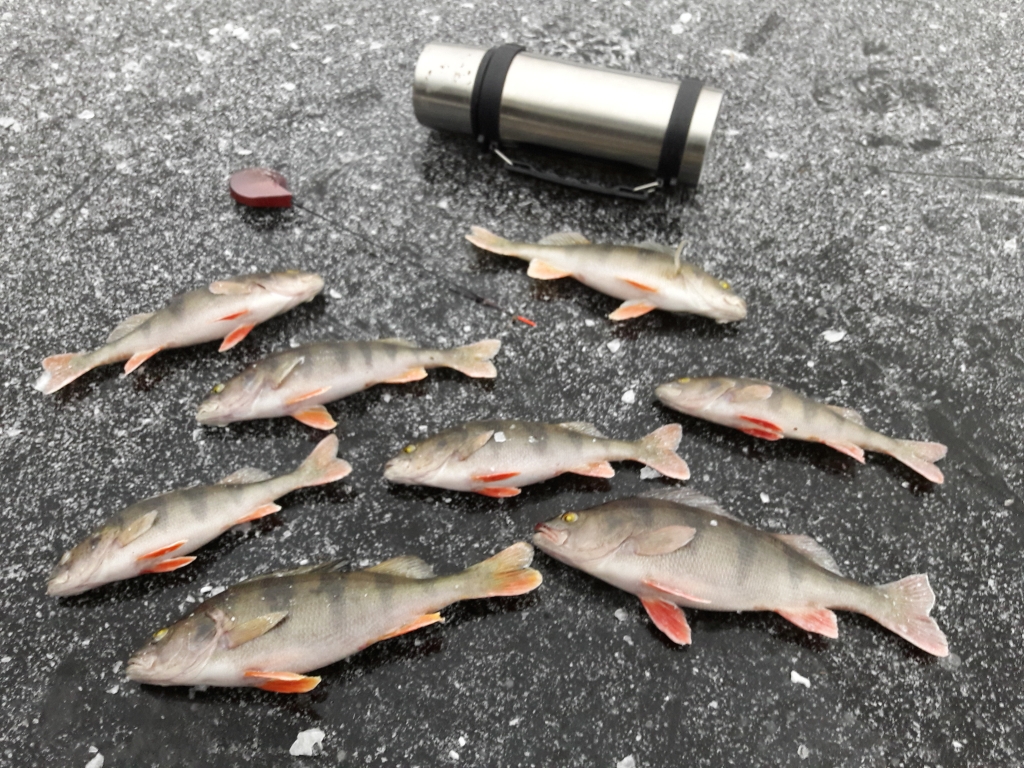 Ukmerges raj. Salia Antakalnio nedidelis ezeriukas,ledas 8+cm. Per 12 zveju(kiek maciau) uzkibo apie 10vnt. 3cm eseriukai :grin: