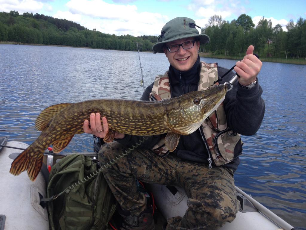 siandien nuo ryto iki pietu atmetem su draugeliu. Nieko ypatingo nesitikejom, kibo mazos ir neperdazniausiai. Is viso pagavom 5 peilius ir viska atpirko vienintelis kibimas ir trofejinis lydys. Draugelis sako o yra traukia sako nu cia jau legali turetu buti, as pasiruoses laukiu atkabint - pamatau lydZio spranda, blyn sakau staigiai atleisi stabdi, lydukas irgi susigaude kad nespozanka, dave spurta viena antra trecia... Bet trisakiai miortvai ikibe ir lydys jau valtyje. 9 kg draugo rekordas. Smagu kad dar yra tokiu lydeku, tiek metu sugebejusi isvengti brakusu ar mesininko. Atidavem pagarba ir paleidom pensininke.