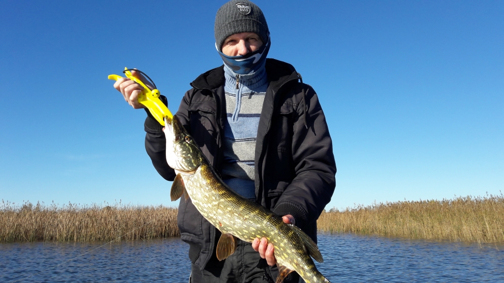 Dar suspėjau į nuvažiuojantį traukinį. Vakare pasikasiau praplikusį pakaušį ir nusprendžiau pavažiuoti kur nors toliau nuo visų šlakinių – lašišinių – upėtakinių upių, kad nereikėtų šiknomis trintis su kitais psichais. Pasirinkau trečios ar ketvirtos eilės intaką ir pirmyn. Kol atvažiavau, persirengiau, jau ir devynios valandos ir -1,5*C. Žvejoti įmanoma. Valas ir žiedai šąla, bet saikingai. Įdomi man tokia žvejyba, kai reikia surasti, kur tokiu metų lauku laikosi lydeka. Keista, bet visos duobės tuščios, arba ten gyvena labai sočios ir išrankios lydekos. Visi kibimai ten, kur rami tekmė ir yra žolių likučių arba priversta pagalių, ir gylio apie pusmetrį. Masalas atitinkamas – silikonas ant ofseto ir 3 ar 4 gramų galvakablis. Žvejojau iki antros valndos, nors jau pirmą valandą buvo galima kulniuoti link mašinos,- pradėjo iš rimtųjų šalti. Oro temperatūra krito iki -6*C. Per pusdienį žvejybos pasisekė įkirsti šešias lydekas. Didžiausia apie 1,5 kg, likusios apie 1 kg. Mano supratimu, rezultatas labai neblogas, nes paprastai tokiuose grioviuose dominuoja lydekiukai +/- legalus dydis, o dviejų kilogramų lydeka jau trofėjus.