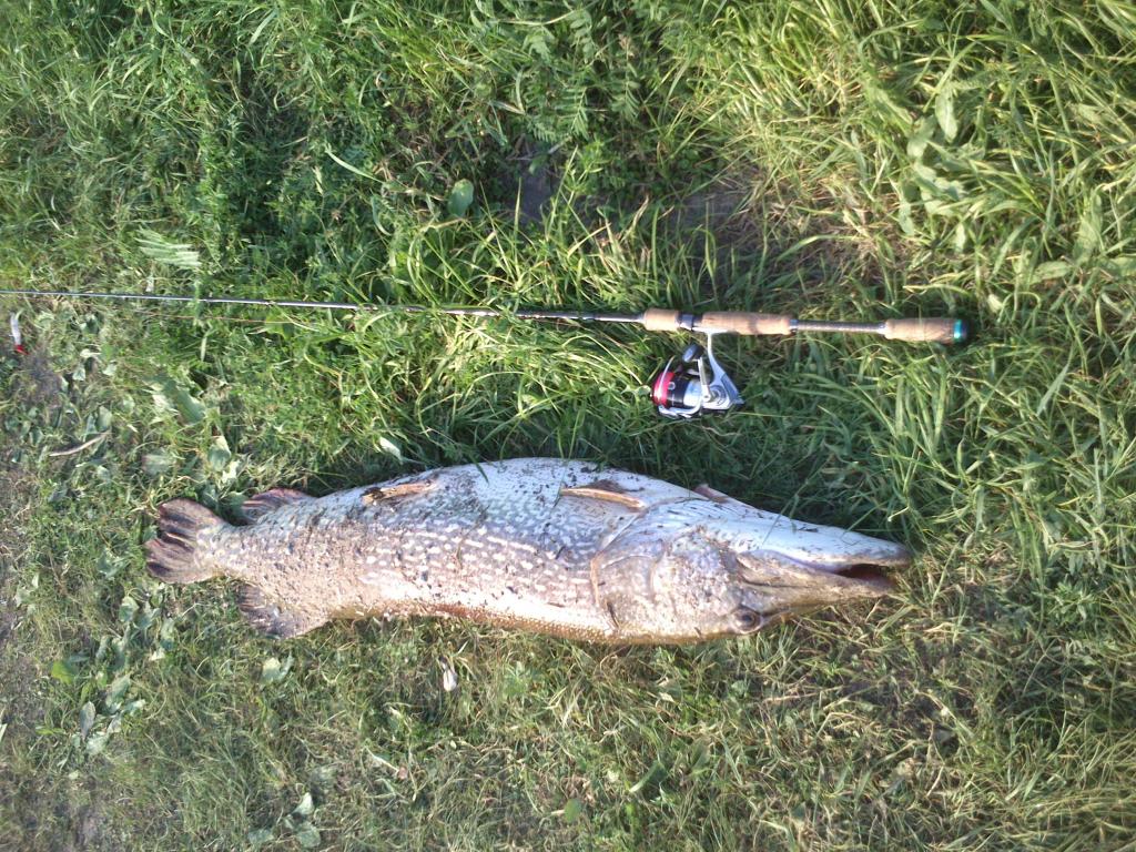 Šiandien vakare buvau prie ežero. Pirmas metimas - kibimas, lydeka 42cm, po poros metimų 44cm ištraukta, po kokių 10 minučių lydeka užkibo, traukė LABAI stipriai, turbūt virš 3kg tai tikrai, bet neištraukiau :/ (Lydis žinoma paleidau). Ką daryti jeigu didelė lydeka užkimba nežinau, aš traukiu iš visų jėgų, bet man visada jos atsikabina, bet mažesnes be vargo ištraukiu... Ir dar kažkaip keistai čia pergerai kibo, nes dažniausiai 3h+ mėtai ir nei vieno kibimo -_-. Žvejojau su Zumpe Jūra 23007 - 25g.
