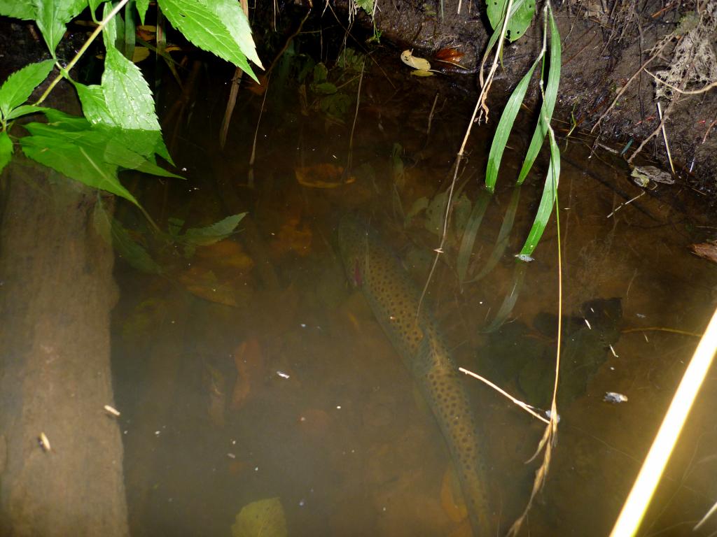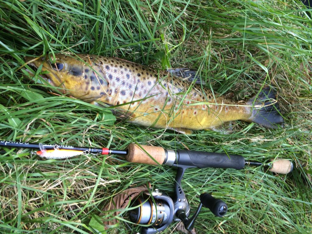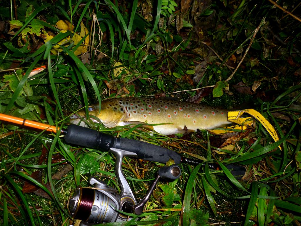 Buvau šiandien žmonos deleguotas parinkti grybų. Turėjau keturias laisvas valandas. Įsimečiau spiningėlį, sakau pabrisiu upeliu kai tik pradės švisti, leisiu grybams pora valandų ūgtelėti :) Pasirodo, bridau ne veltui. Gaila, neturėjau normalios ruletės, šios popierinės 37 cm nebeužteko, primečiau gal kiek netiksliai, apie 42-43 cm.