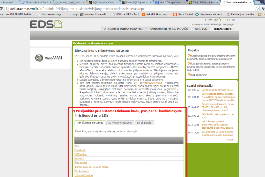 2) Pasirink sau priimtiną prisijungimo prie deklaravimo sistemos būdą: