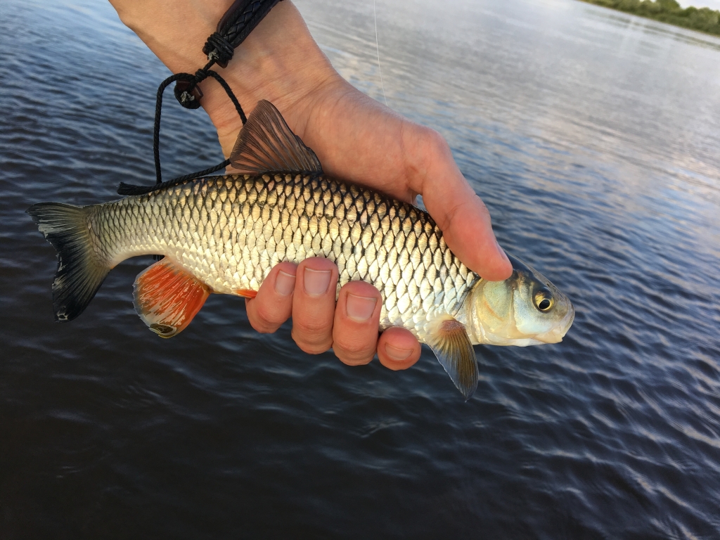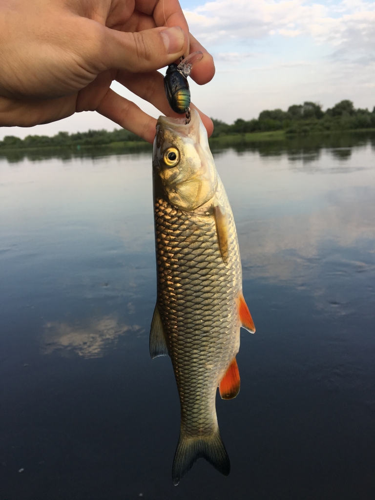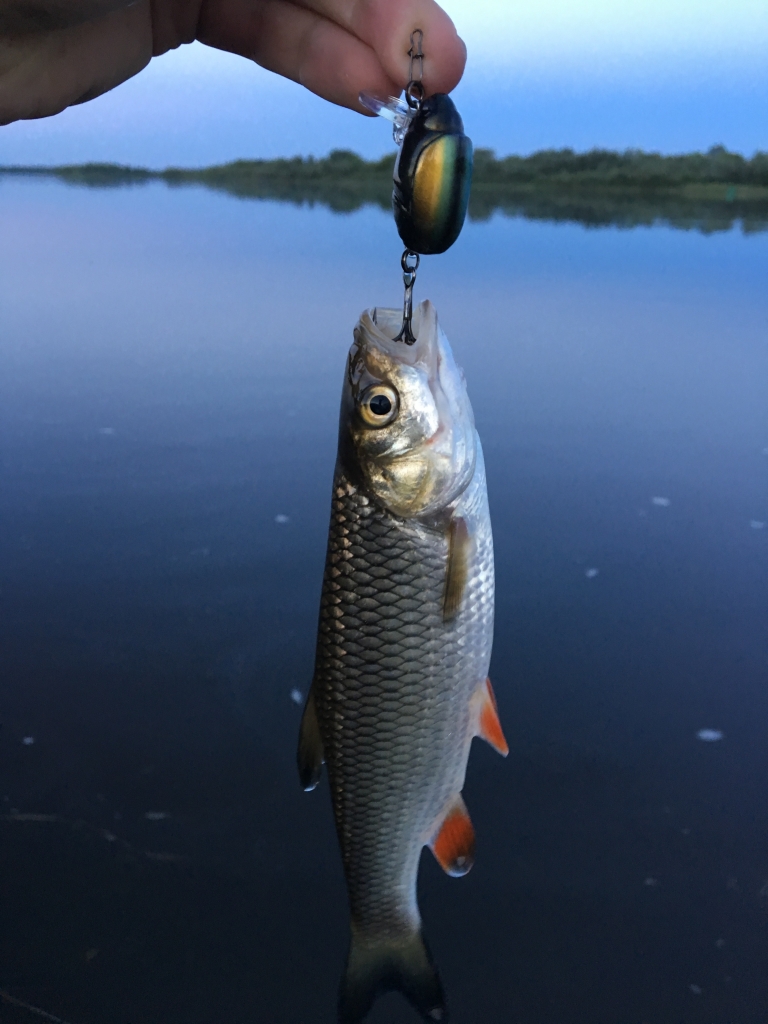 Vėl pavakarojau prie Nemuno. Ne per seniausiai grįžau. Mėčiau nuo 19-21 valandos, o per tą laiką susigundė tik mini, taškuotas ešeriokas. Tada jau beveik susiruošiau namo, žingniavau link mašinos bet nusprendžiau padaryti kelis metimus kitoje žinomoje vietoje, akmenyne, kur esant žemam vandeniui nemažai tiek šapalų, tiek salačių. Užsidėjau gan ryškų, mėlyną su rožiniu pilvu, Chubby SSR, kuriuo nelabai tikėjau, bet gal trečiu metimu vedant pasroviui kalė ir fotosesijai pasisveikino visai gražus šapaliokas. Dar keli metimai, mini šapaliukas. Pradėjo temti, metas namo. ;uolrait