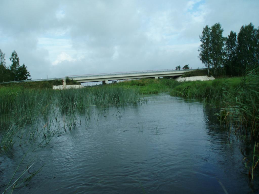 Žvilgsnis nuo tilto žiūrin aukštyn, prieš srovę:
