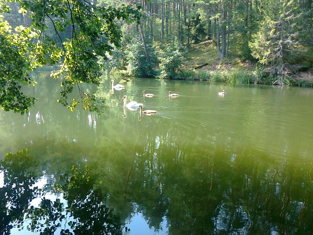 Vasara tikrai neeiline. Po sausros pradėjo lyti, kur su kruša ,kur smarkus lietus su vėtra,... Ir tokie orai suknisa protą.... Iš ryto sėdžiu name ,kaip apsirukęs ,bet staiga kyla toks noras žvejoti ,kad per 15min. spėju susiruošti. .Va ir šiandien užsimaniau aukšliu.....žinau kur jų galima pagauti tokiu oru .Ir pirmyn .Ežerėlis nedidelis bet "derlingas". Pilnas visokiu paukščiu. O svarbiausia manęs nustebino gulbių šeima... Septini vaikai. Dar tiek nematęs. ...Na o aukšliu pagavau 2kg. per 1,5 val. Už nugaros pradėjo "Dundulis" bartis ,tai mikliai prie kranto ,nusimaudžiau ir namo .Aukšles dideles....Deja skubant i žvejyba pamiršau f. aparatą... o su telefonu iš arti kokybe ..... :/nek Buvo visokiu. Mano katinas mėgsta :grin: nuo 15 iki ..... cm.