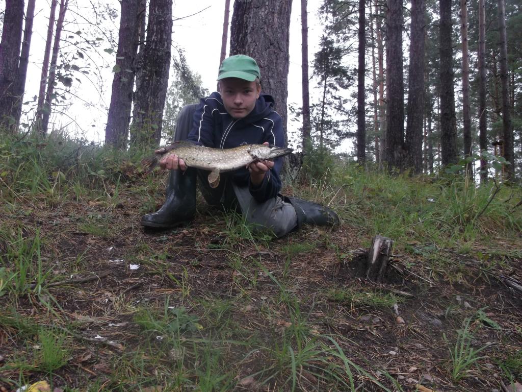 kadangi buvo kelios lietingos,šaltos dienos nusprendžiau patikrinti kaip kimba lydekos.Atsikėliau apie 06:00val. pažiūrėjau per langą ir pamačiau kad lyja,tad užkaičiau arbatinuką ir nutariau kol virs pagulėti.Išėjo taip jog užmigau ir atsikėliau tik apie 10:00val.Maždaug už valandos jau buvau prie pirmos vietelės,baiginėdamas vietos patikrą,paskutiniu metimu,visiškai prie nendrių ir kranto pajutau smūgį ir išvydau kad su mano masalu dantyse į šoną plaukią lydekaitė,būčiau iškėlęs "oru",bet žuvis "paprašė' valo tad teko pavargti kol vėl prisitraukiau ją prie kranto.