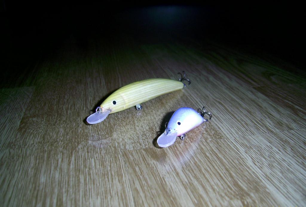 8 cm, 10g, su "vaikščiojančiu" cilindriuku viduriuose, plaukiantis (dar su kokiu 2g rezervu iki skendimo:D)