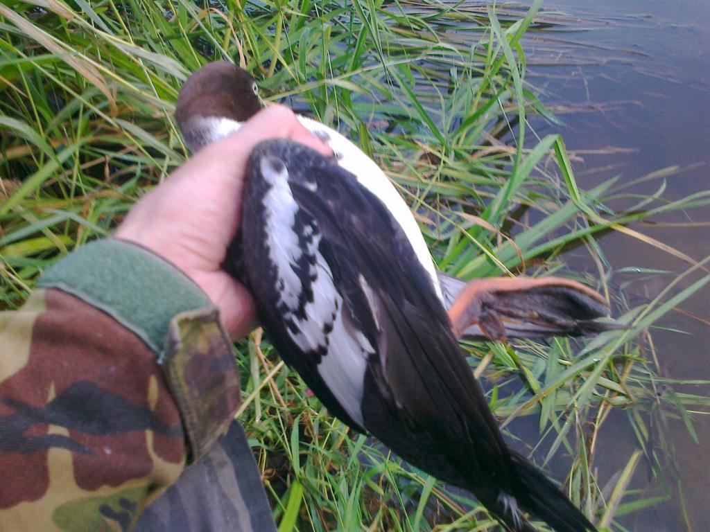 , panardintas po vandeniu dideliais svoriais turbūt, kad galingos plūdės jo neiškeltų i paviršių ir nieko nesimatytų iš toliau. Žuvies irgi yra, ir kiek eina įžiūrėt, matau vien lynus, ir nemažus. Vadinasi jis čia mirksta per naktį, o gal ir dar ilgiau. Aišku , aš čia nežvejosiu, reikia plaukt į tą seklumą, kur tas žmogus rodė ir ten mėgint. Taip ir padariau, nuplaukiau, radau tinkamą užmetimui tarpą, lyg secialiai būtų padarytas, įmečiau tenais pašaro, užmečiau meškerę ir , laukdamas kol plūdė sujudės, skambinu vienu iš žinomų gamtosaugininkų numerių.