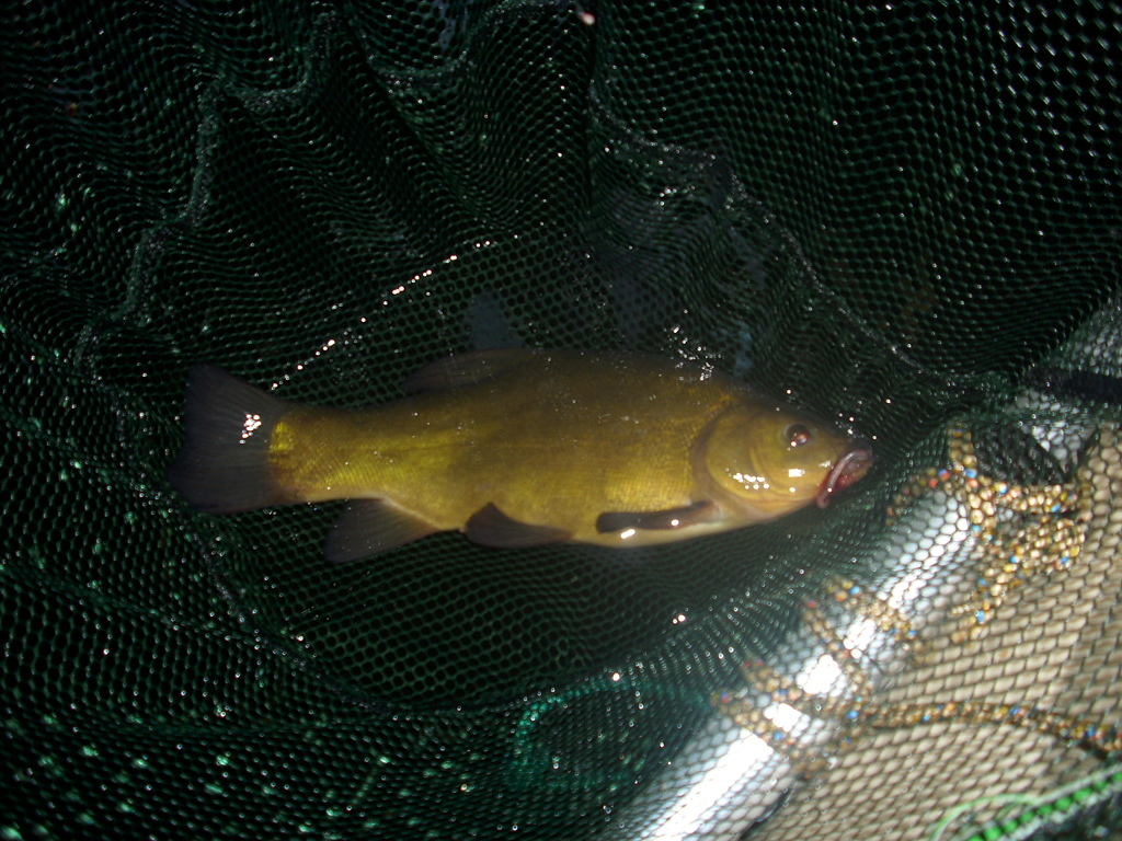 Mosteliu meškerykočiu, iš pirmo karto pataikau puikiai į vietą, ir ,vietoj laukto plūdės šokio tymt tymt tymt, kaip jinai elgiasi, kai kimba smulkmė, pamatau, kaip iš lėto grimsta dugnan. O taip būna tik tada, kai masalą paima rimtesnė žuvis. Pakertu, joooo, širdis apsidžiaugia , anam gale priešininkas visai neblogas, kotas net trata nuo jo priešinimosi, bet aš stipresnis, prisitraukiu neskubėdamas , leisdamas žuviai šiek tiek pavargti, kad būtų ramesnė ir sugriebęs įsikeliu valtin... Ėch , nubraukiu prakaitą
