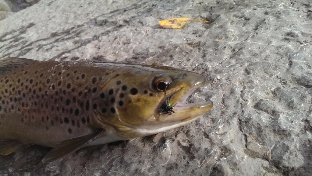 Neturiu jokio noro bendraut su sita publika, tai islaikydamas atstuma pereinu is naujo i ruozo pradzia ir stebedamas upetakiams infarkta ivaryt bebandancius “raudonsprandzius” prisirisu atgal buggeri bei pradedu is naujo leistis ruozu pasroviui. Po viso sito triuksmingo vietiniu aborigenu pasirodymo dideliu vilciu ruoze pagaut upetaki nebeturiu. Taciau, kaip atsirade, taip nieko pagauti nesugebeje “kolegos” dingsta man is vaizdo. Ruozas po truputi rimsta, taciau jau arteja vakaras ir laikas baigti zvejyba. Letai leidziuosi ruozu zemyn ir pacioj ruozo pabaigoj issokes is po kelmo, kai as maziausiai to tikejausi, mano bugger’i atakuoja grazus mazdaug 35 cm margasis upetakis. Po kiek truputi ilgiau nei deretu uztrukusios kovos,mat dar teko prisimint ir kaip su museline traukt zuvi, upetakis trumpai fotosesijai atsiduria krante.