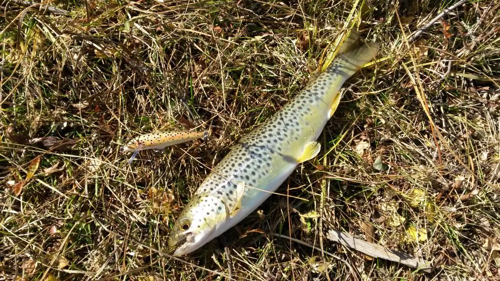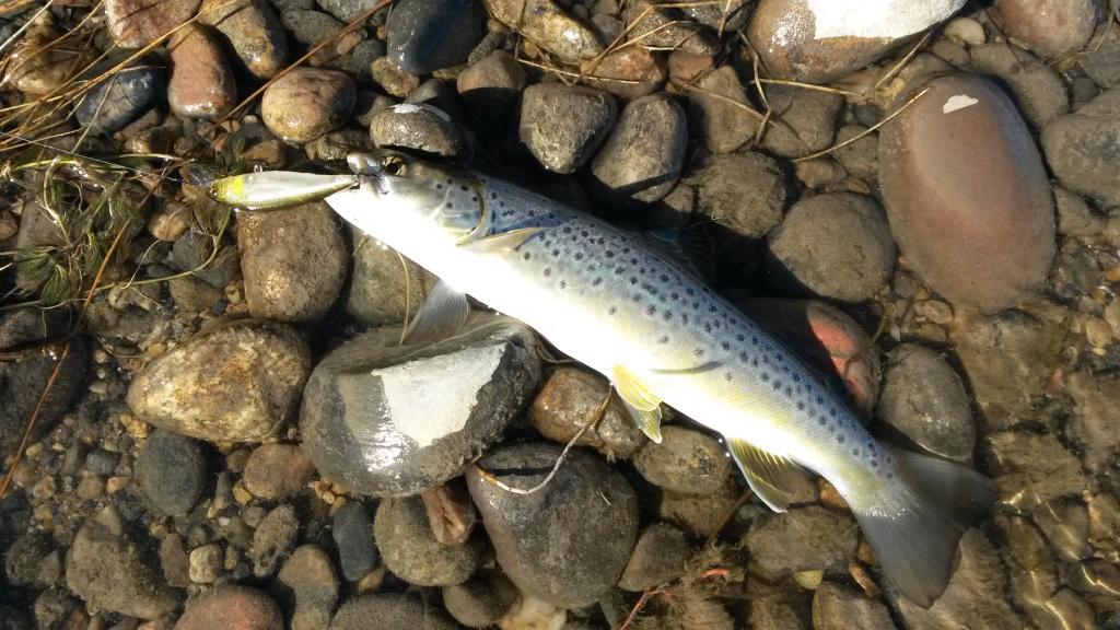 Dar kiek paejus prasideda kokio simto metro ilgio ramaus vandens ruozas. I darbines pozicijas grizta komachis ir ji gana aktyviai kapoja nedideli margieji upetakiai. Sis ruozas kiek gilesnis, tai nusprendziu eilini kart perkratyt masalu dezute beieskodamas ko nors stambesnio. Uz akies uzkliuna Jackall squad minnow 65 vobleriukas. Tai labai grazu darba tolygiai traukiant turintis vobleriukas, kuris dirba grazia sinusoide gana placiai (kaip beje ir komachis) metydamas i sonus savo uzpakali, o toks platus metymasis i sonus, mano supratimu, tai itin patinka lasisinems zuvims. Jau vakareja ir grizineju atgal tuo jau viena karta praeitu ramiu ruozu bemetydamas squad’a. Pacioj ruozo pabaigoj vobleri stveria kiek stambesnis taciau nieko labai ypatingo margasis upetakis.