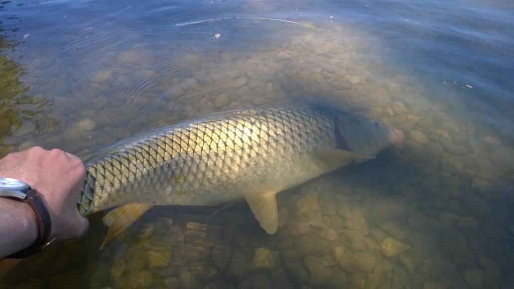 Siek tiek gaila, kad nuotrauka niekaip neperduoda viso to spalvu grozio. Dar keli upelio posukiai ir komachi suvalgyt pabando grazus mazdaug 35 cm margasis upetakis.