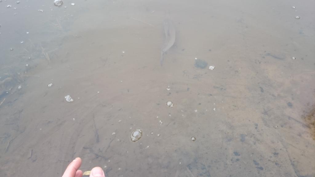 ir štai… Kad pademonstruot skirtumus su savo kotu ir paaiškint, kad jaunuolio kotas dirba šiektiek kitaip, užsidedu jo džerką be kablių ir švysteliu į upės vidurį, pravedu padaužydamas su pauzėmis vieną kart, po to švysteliu antrą kart, patraukiu trečdalį nušveisto atstumo ir … BAC kažkas per džerką… aš intuityviai pakertu ir… prisimenu… kad džerkas tai be kablių, bet kitam gale dar jaučiu, kad žuvis tai sėdi, seka antras intuityvus kontrolinis “pakirtimas” ir iš akies toks pusantrinis “lydys” išsiverčia į paviršių… vienžo, antrasis kontrolinis pasiteisino… žuvį jau pamatėm