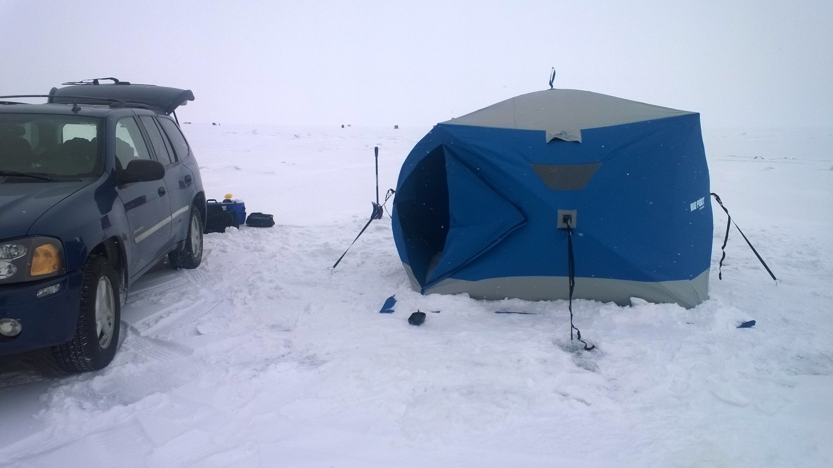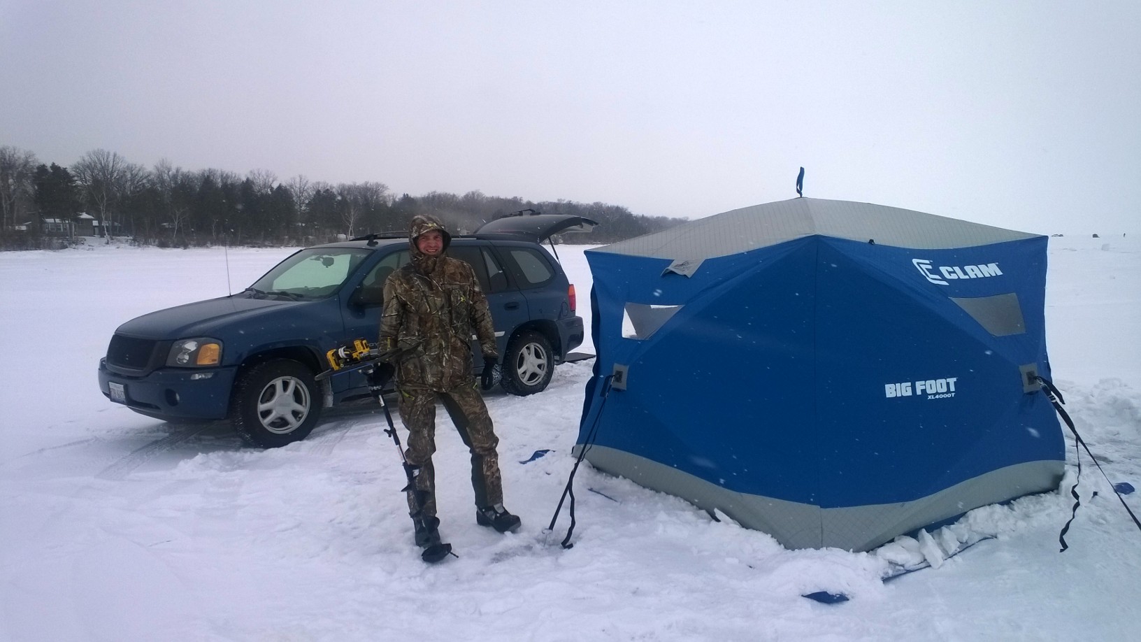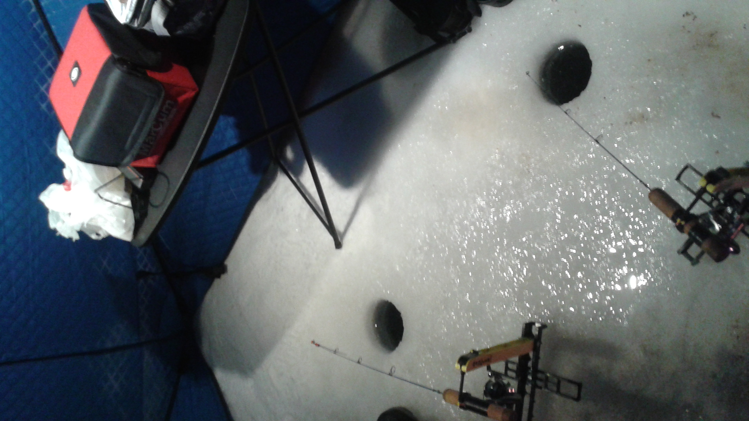 Jei kas nors neatkreipe demesio, tai ant stalo pries nosis yra dezute su uzrasu MarCum. Draugas mano upgradino savo elektronika ir dabar sau uz nugaros isgreziam atskira ekete, leidziam i ja kamera ir pries nosis ekrane matome ne tik kaip dirba musu jig'ai, bet ir kiekviena praplaukiancia zuvi, arba kai zuvis priplaukia, ir negriebus masalo nusisukusi nuplaukia...