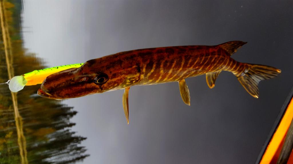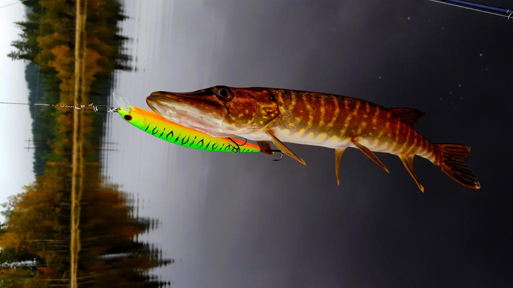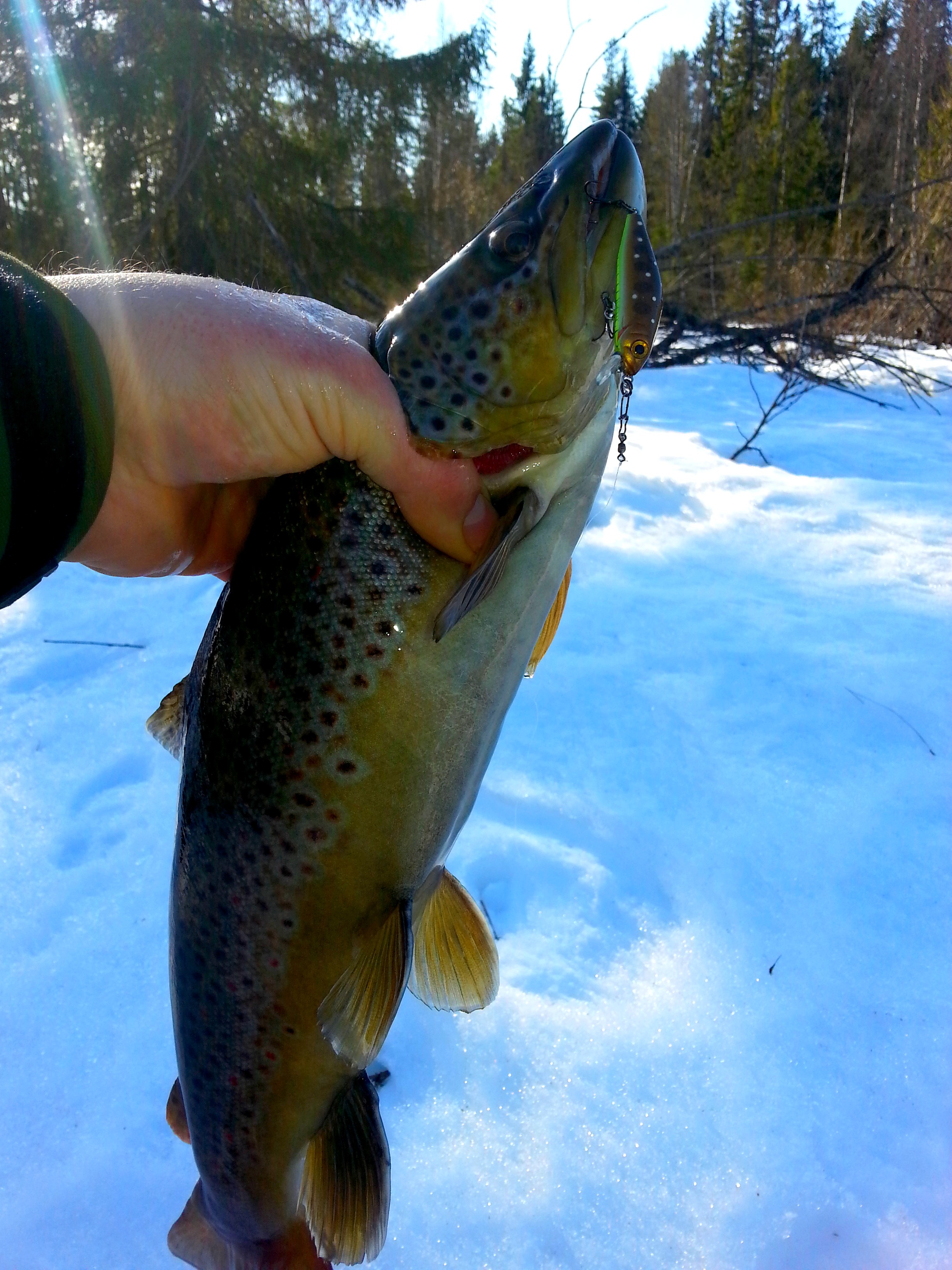 Sekmadienį į žūklę išsiruošiau ganėtinai vėlai tik puse pirmos į juodųjų velnių paieškas, bet matyt pataikiau ant pačių upėtakių pietų. :) Rezultatas tų ,,pietų": Pagerintas truputi mano rekordas 48 cm, po to iškart pametus vobleriuką į kitą pusę kaimynas neatlaikė neparagavęs 42 cm ir galiausiai, matyt, varg6elis tiek valgyti norėjo ir tiek godžiai norėjo nusinešti mano masalą, kad nepataikė ir už kupros pasikabino. ;-var-var. Šį savaitgali manau dar ilgai atsiminsiu. ;uolrait