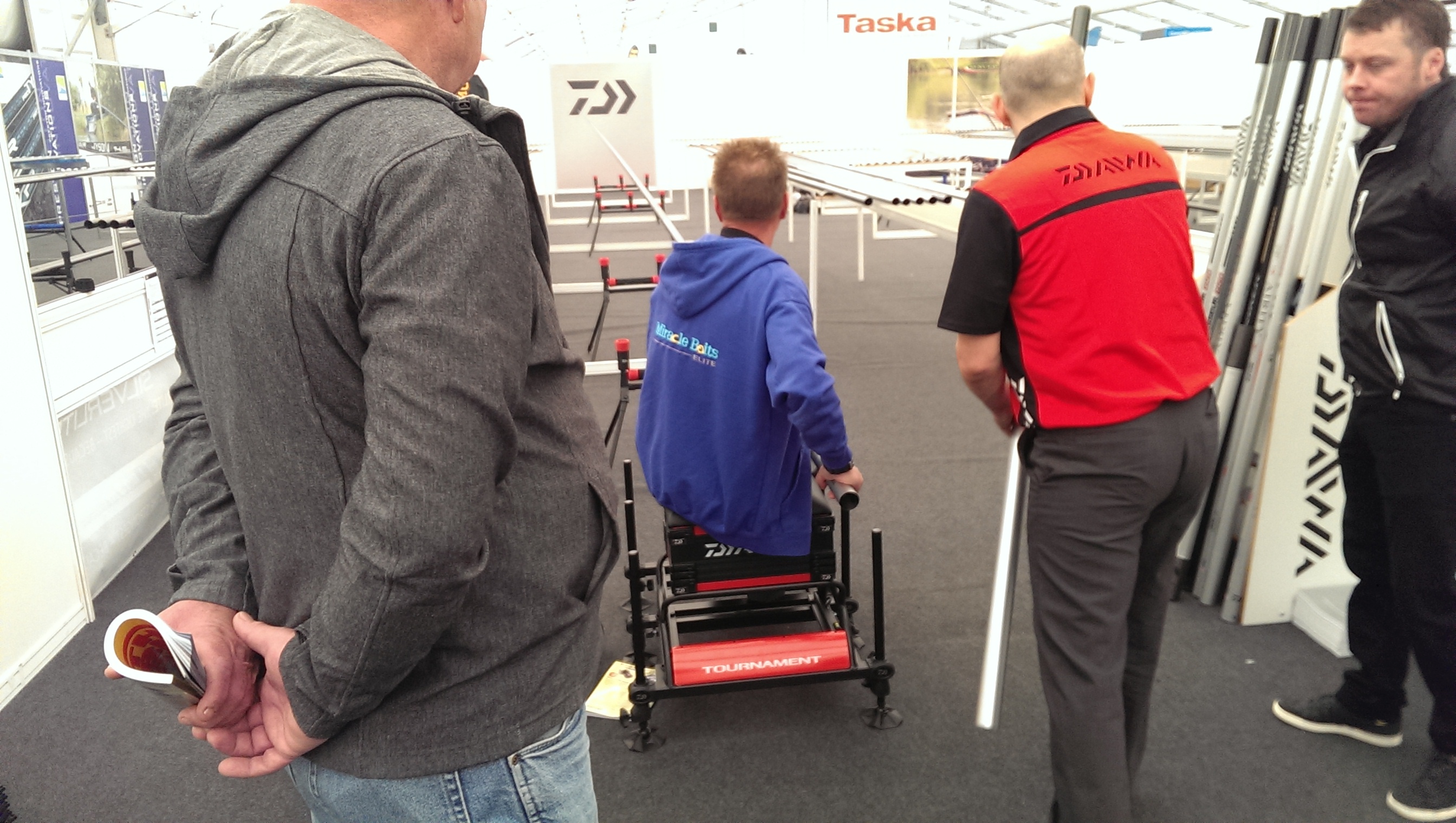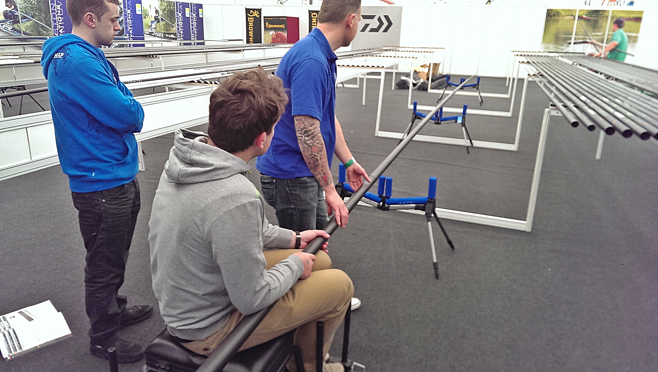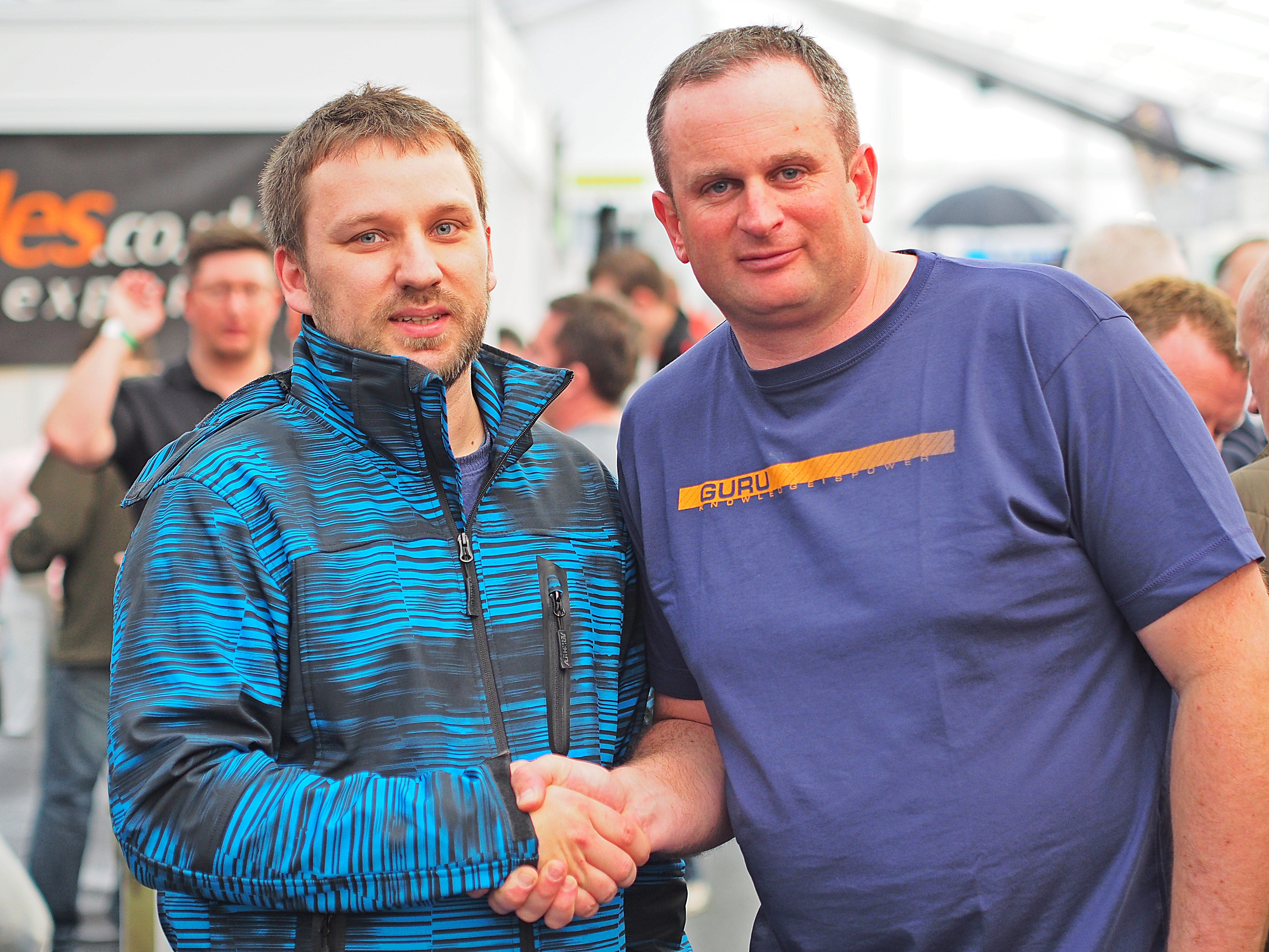 Sveiki, senai nerašiau, o ir pirmą kart šioje temoje. Iškart atsiprašau už kokybę( kitais metais tikrai fotoaparatą imsiu :-D ). Taigi prie reikalo... Kadangi teko pakeisti gyvenamąją vietą( laikinai :-niak' ) ir, kad nebūtų nuobodu reikia ieškoti pramogų. Anglijoje po upių sezono uždarymo ( kovo 15d. prasideda "Closed season" iki birželio 15, imtinai) vyksta didelė žūklės reikmenų paroda "The Big One". Gamintojų pristatančių "naujoves" tikrai netrūksta, tik gaila, kad tos naujovės ne tokios jau ir naujos. Dažniausiai jos būna pristatytos metų pradžioje, bet proga susipažinti iš arčiau ir pačiam viską pačiupinėti suviliojo ir mane. Su kolega Andrium dar porą dienų prieš galvojom gal geriau važiuoti žvejoti, bet nusprendėm, kad reikia praplėsti savo informacinį ratą( nors jis ir taip daug maž visas naujoves žino :-D ). Paroda vyksta visą savaitgalį, žmonių tonos, galvojam gal išlošim važiuodami sekmadienį, bet deja... Gal likus dar kokiam geram kilometrui iki renginio vietos atsimušome į kamštį, tad nusprendėme kulniuoti ir tai pasiteisino. Palikome mašina ir aplenkėme daugelį stovėjusių kamštyje. Nors atejus prie didžiulės palapinės tuntai žmonių vis dar plūdo į vidų. Eilėjė greit prasikošėme iki kasos. Visi malonūs, atsikratėme po 12 karalienės pinigų ir patekome į didžiulę palapinę. Veiksmas prasidėjo...