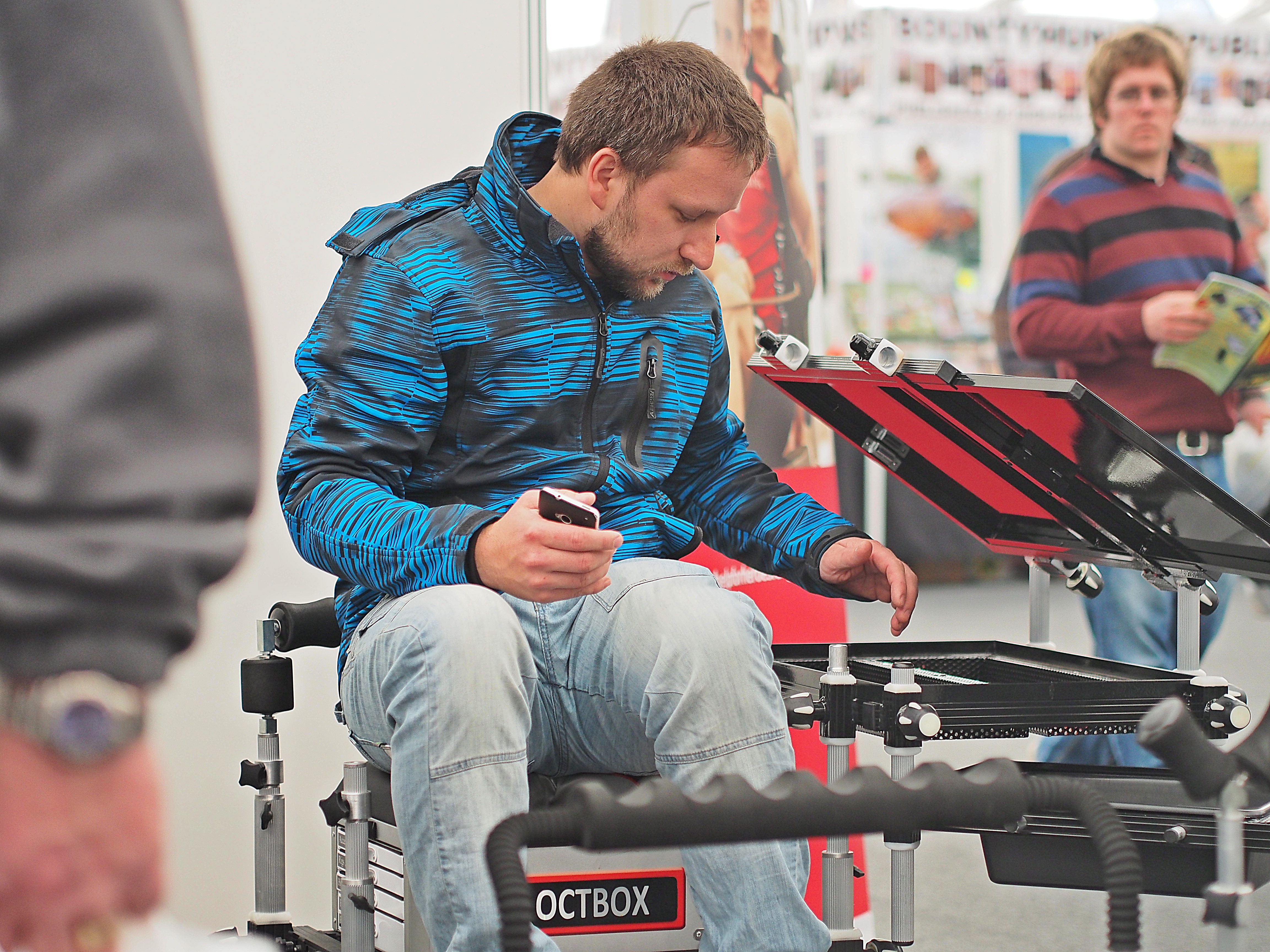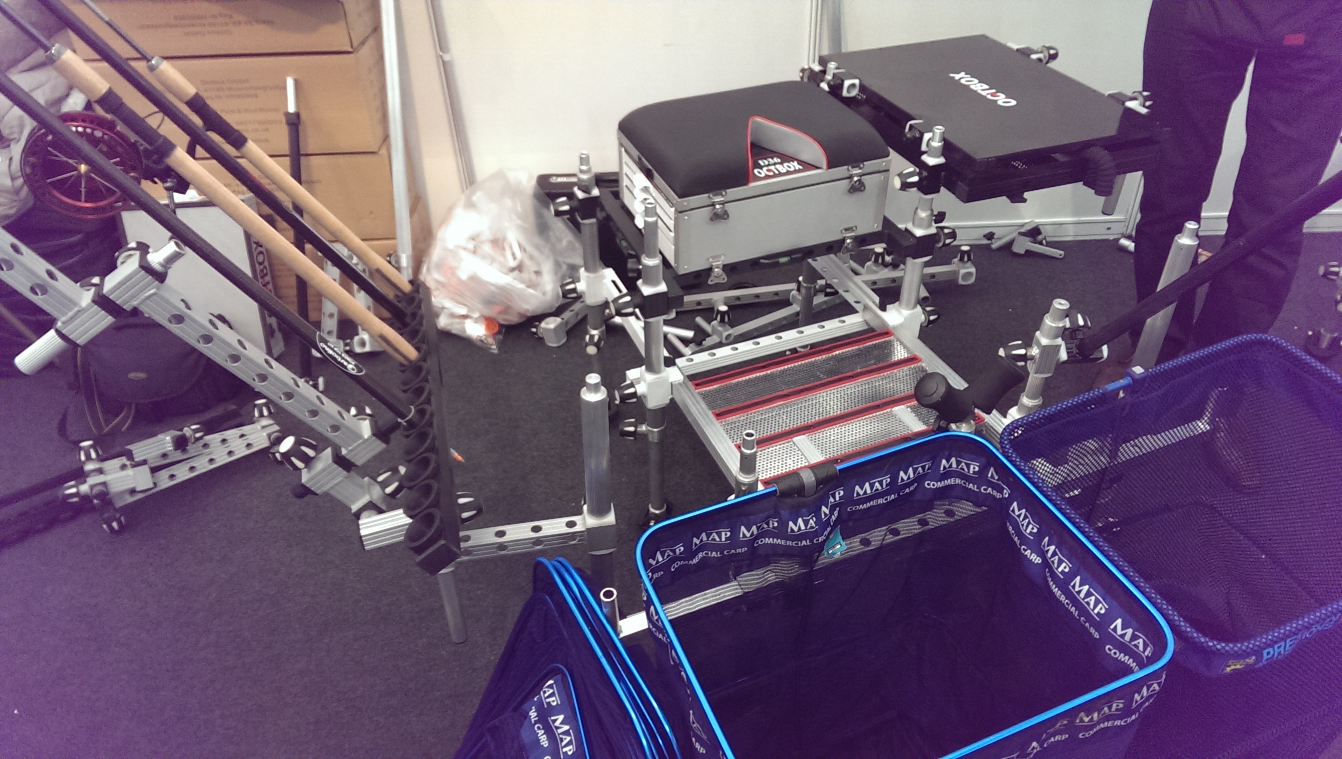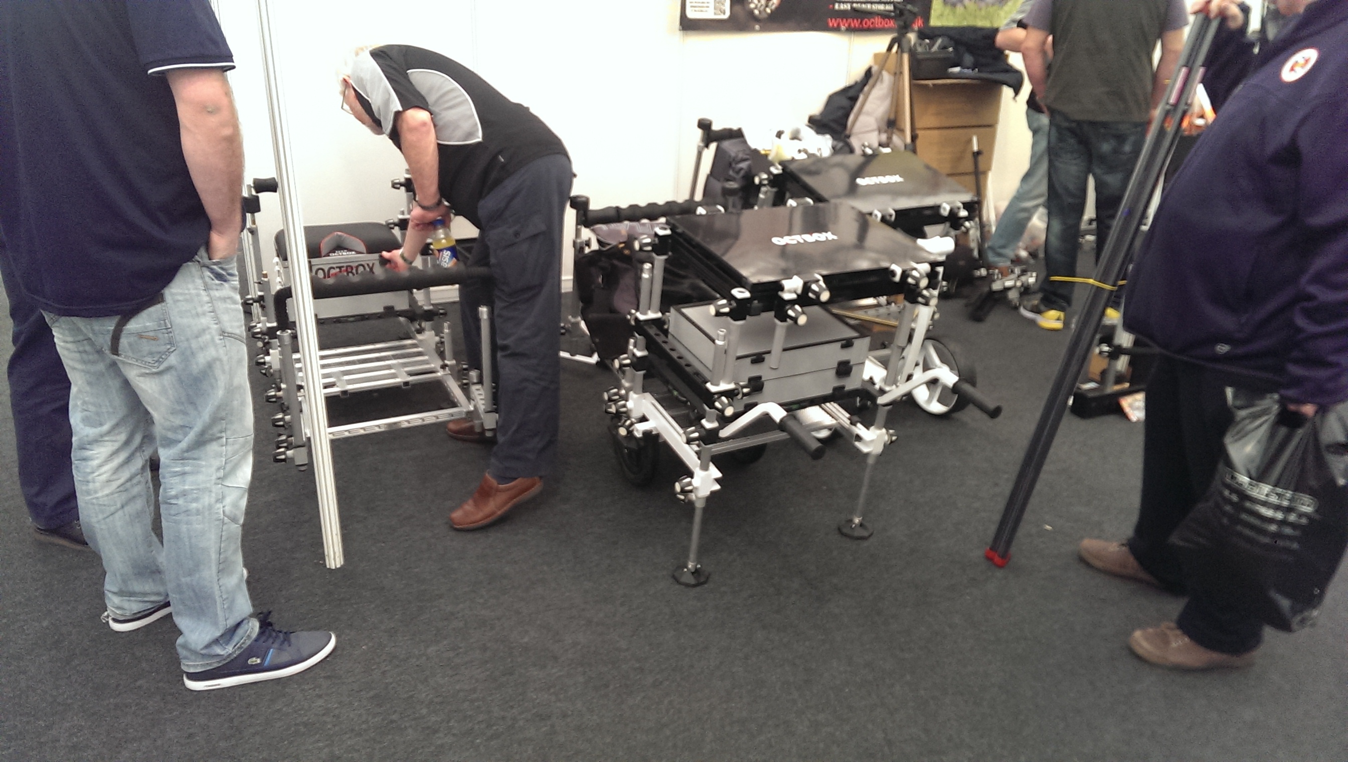 Sekanti stotelė "Octbox" platformos. Vėliau nusprendėme, kad padarėme klaidą jog pirmą apžiūrėjome jas, nes poto visos naujausios kitų gamintojų platformos tiesiog nublanko. Neina net lyginti, surinkimo kokybė, priedai, mobilumas, patogumus... Žodžiu aukščiausia klasė. Nei dreba judinant, nei kliba kas. Viskas po ranka, patogu. Turėjo "naujas kojas" korios tikriausiai išsiskleidžia 180cm, būtų galima viduryje upės žvejoti :lol: