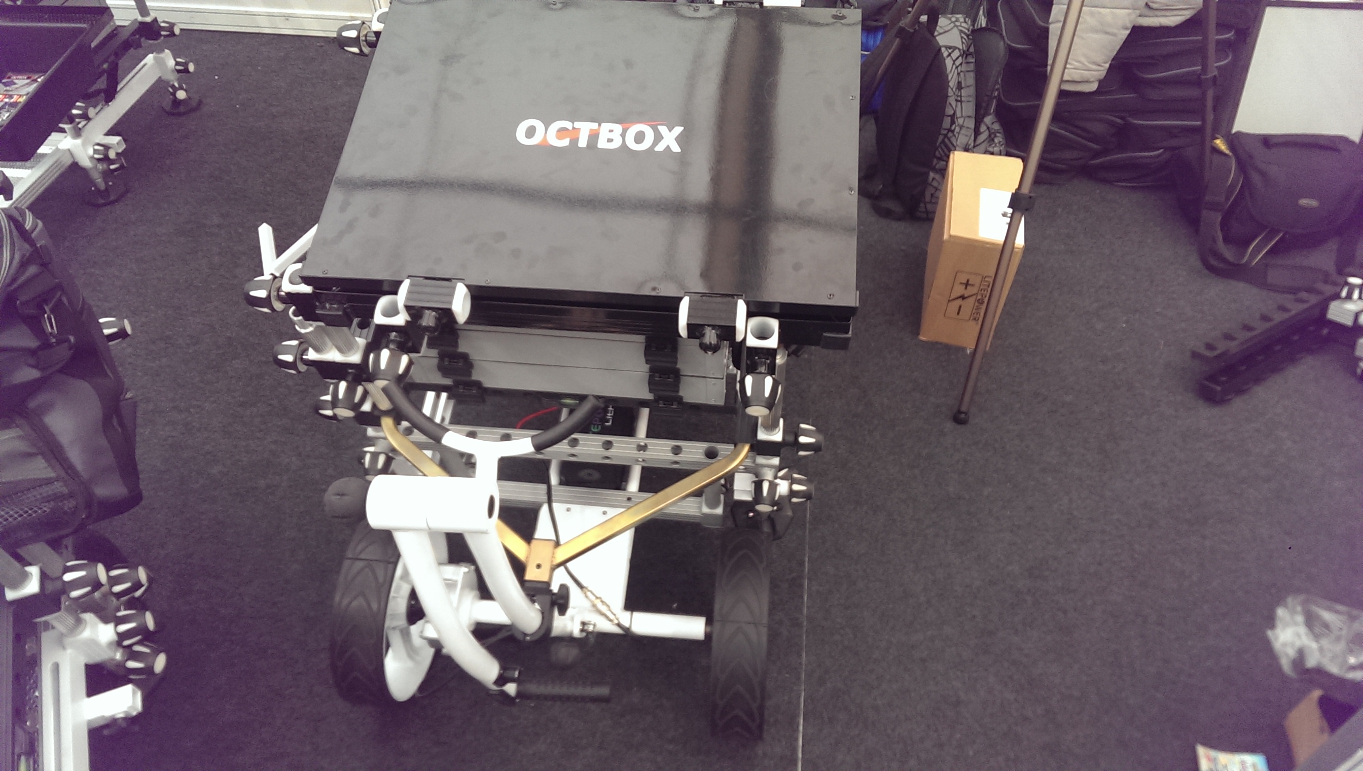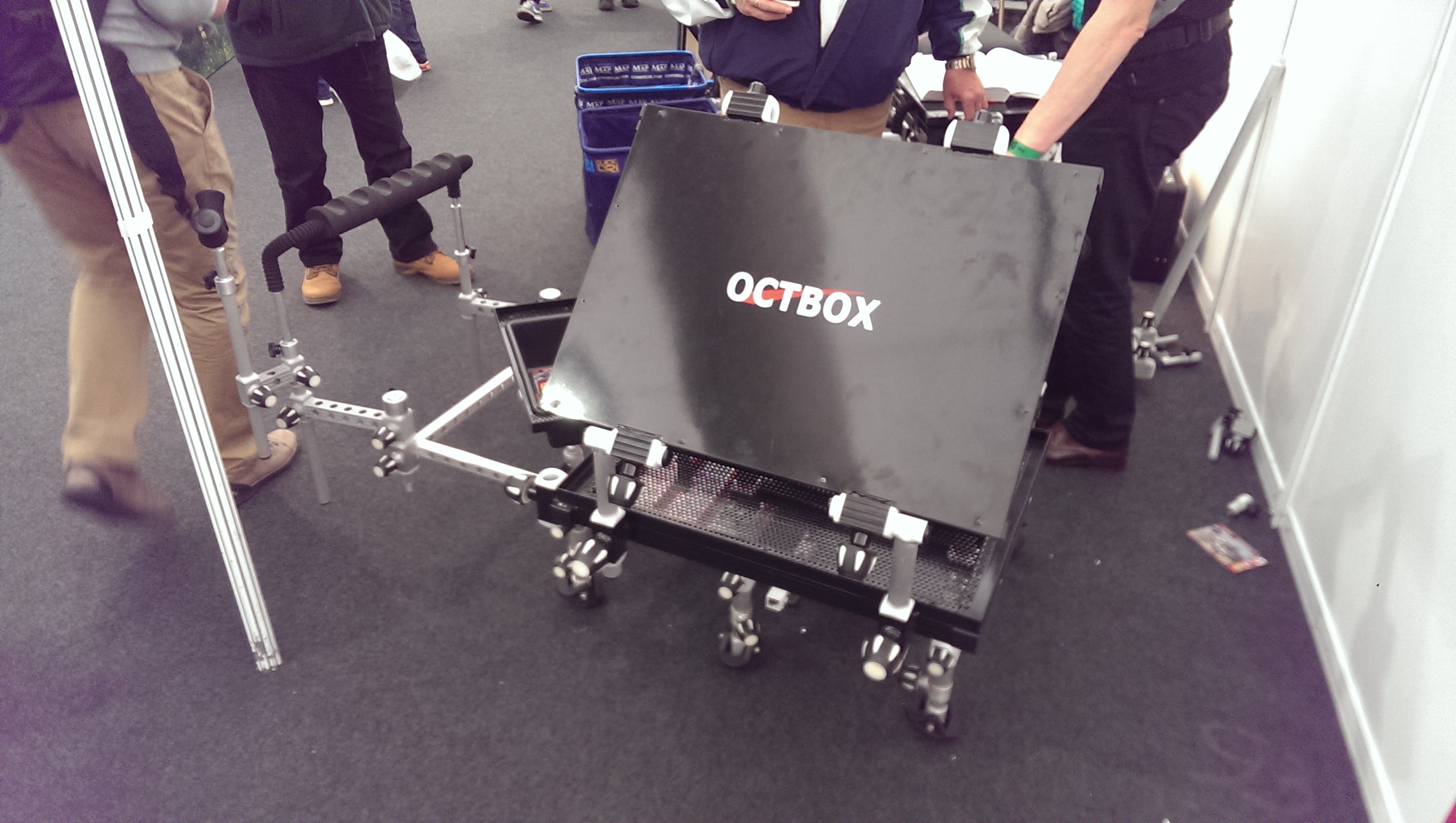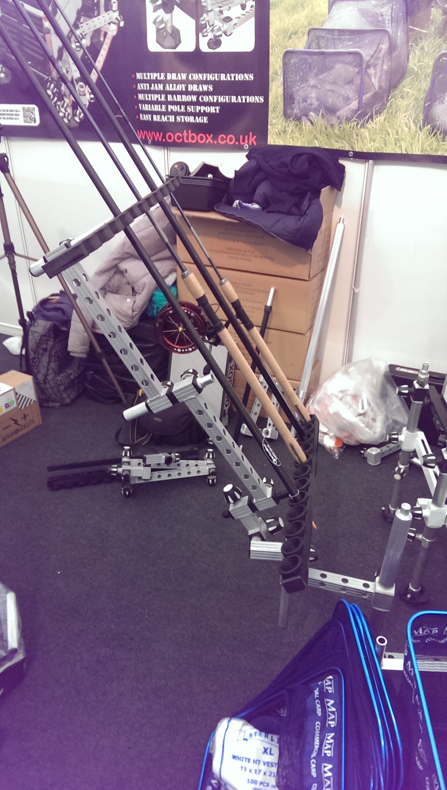 Sekanti stotelė "Octbox" platformos. Vėliau nusprendėme, kad padarėme klaidą jog pirmą apžiūrėjome jas, nes poto visos naujausios kitų gamintojų platformos tiesiog nublanko. Neina net lyginti, surinkimo kokybė, priedai, mobilumas, patogumus... Žodžiu aukščiausia klasė. Nei dreba judinant, nei kliba kas. Viskas po ranka, patogu. Turėjo "naujas kojas" korios tikriausiai išsiskleidžia 180cm, būtų galima viduryje upės žvejoti :lol: