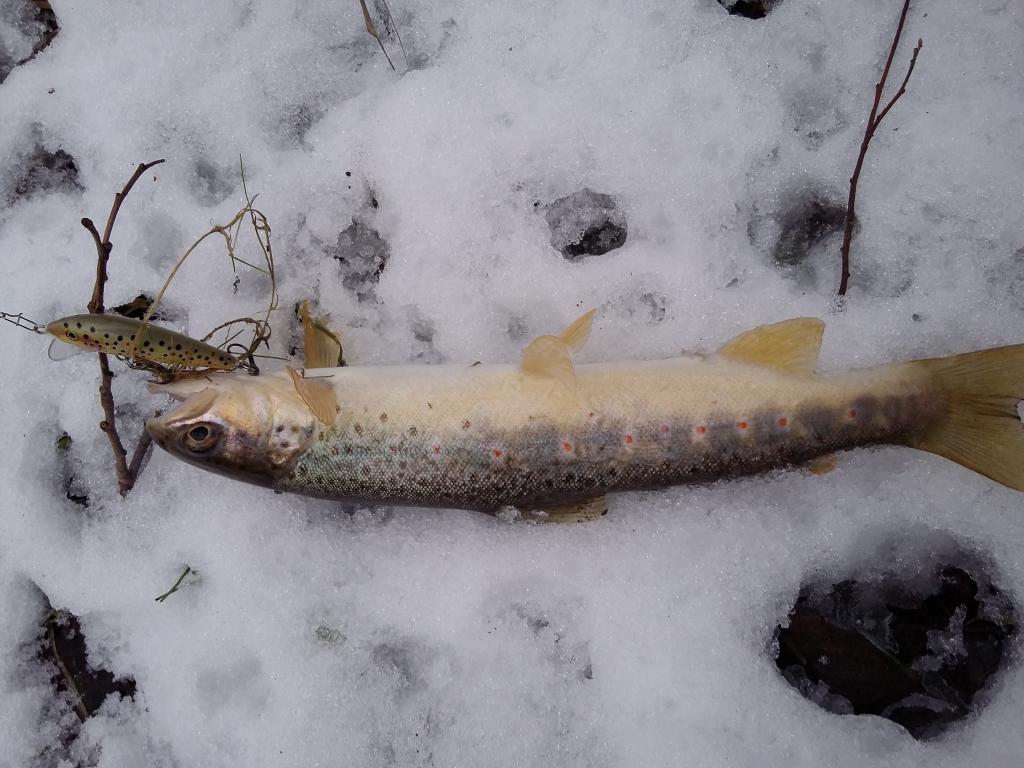 Nu pagaliau ir aš šiandien trečioj žvejyboj atsidariau... : ;-var-var. , pravedimą iš pagrindų pakeičiau, ilgiau drožt perspektyvias vietas pradėjau, nors ir nedideliauskas, bet vienas ištrauktas, vienas neblogas prie pat kranto nusipurtė ir dar keli prispaudimai, bet nerealizuoti... :), anyway atrodo, kad pradedu kažkiek suprast žieminį upėtakiavimą... Penktadienį reiks vėl bandyt, jei tik išeis... :) , dar oras šiandien grynai pavasarinis supuolė ir lietaus negavau beveik, žodžiu superinis poilsis gavosi :)