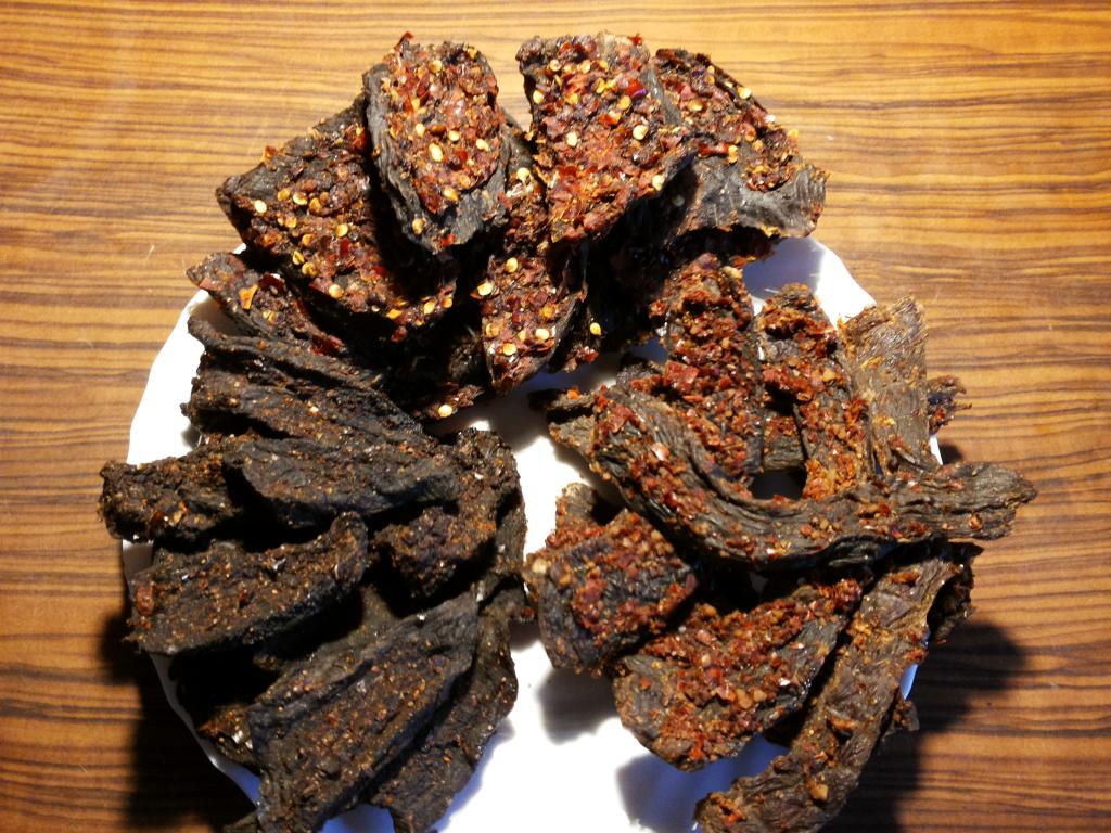 Šitie išdžiovinti tiek kiek reikia. Šiaurinių valstijų gyventojų mėgstami džerkiai biški skiriasi nuo pietinių valstijų mėgstamu tiek prieskoniais, tiek pačių džerkių storiu ir išdžiovinimo lygiu. Aš dabar eksperimentuoju su meksikoniškų tradicijų patiekalais, kurie privalo būti ne tik aštrūs, bet ir trupėti kaip čypsai. Teoriškai jau ganėtinai išanalizavau visų regionų receptūras, principinius skirtumus tiek technologijose, tiek prieskuoniuose, tad ateis laikas ir tiems šiaurietieškiems džerkiams, kurie žymiai artimesni lietuviškam įsivaizdavimui apie džiovintą mesa, o ir prieskoniai paprastesni bei pažystami tautiečiams. Bet man asmeniškai patinka ugnis.... :)