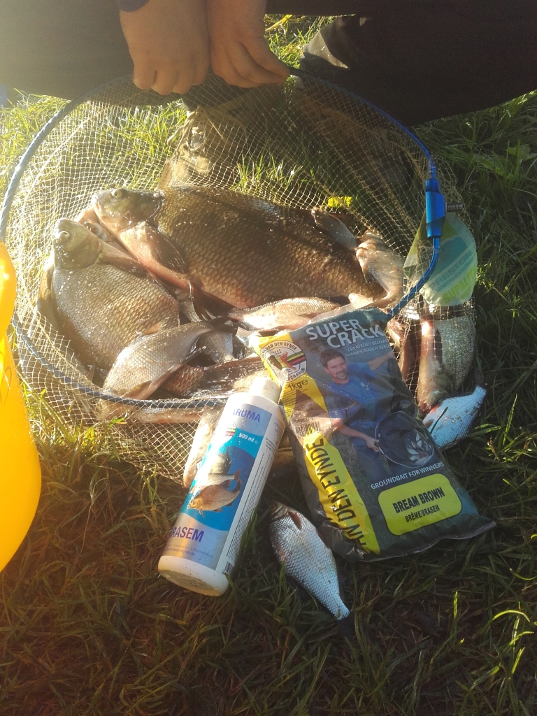 Šiandien vėl mūčinom karpiukus... Dviese, 6 meškerės, visi sukibo ant dviejų meškerių. 11 krante, 4 nutrūko, dar keli nepasikirto... Buvo kelios neįskaitinės žuvys...