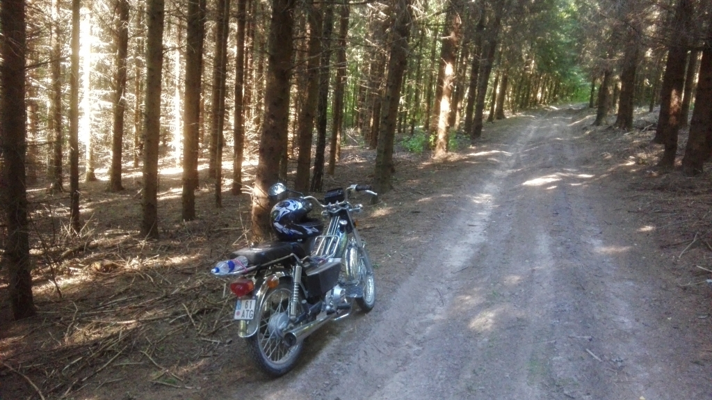 sia vasara lakstau su situo.nuoriu teisiu galingesniam.bet ir tas 50 kubiku.eina miskais lipa i tokius kalniukus kad net netikiejau.trasoi 80 .75 eina,o virkeliu ar misko keliukais jau net 50 kaikur per daug.4 begiu.smagiau u motoroleri.paupeis vaziavau sunkeliukais 100km gavos.tai tas aparatas surijo 2 litrus 100 gramus.